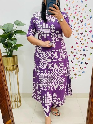 Jiva Purple Embroidered Indian Straight Cotton Salwar Kameez Kurti Pant Dupatta Set for Women