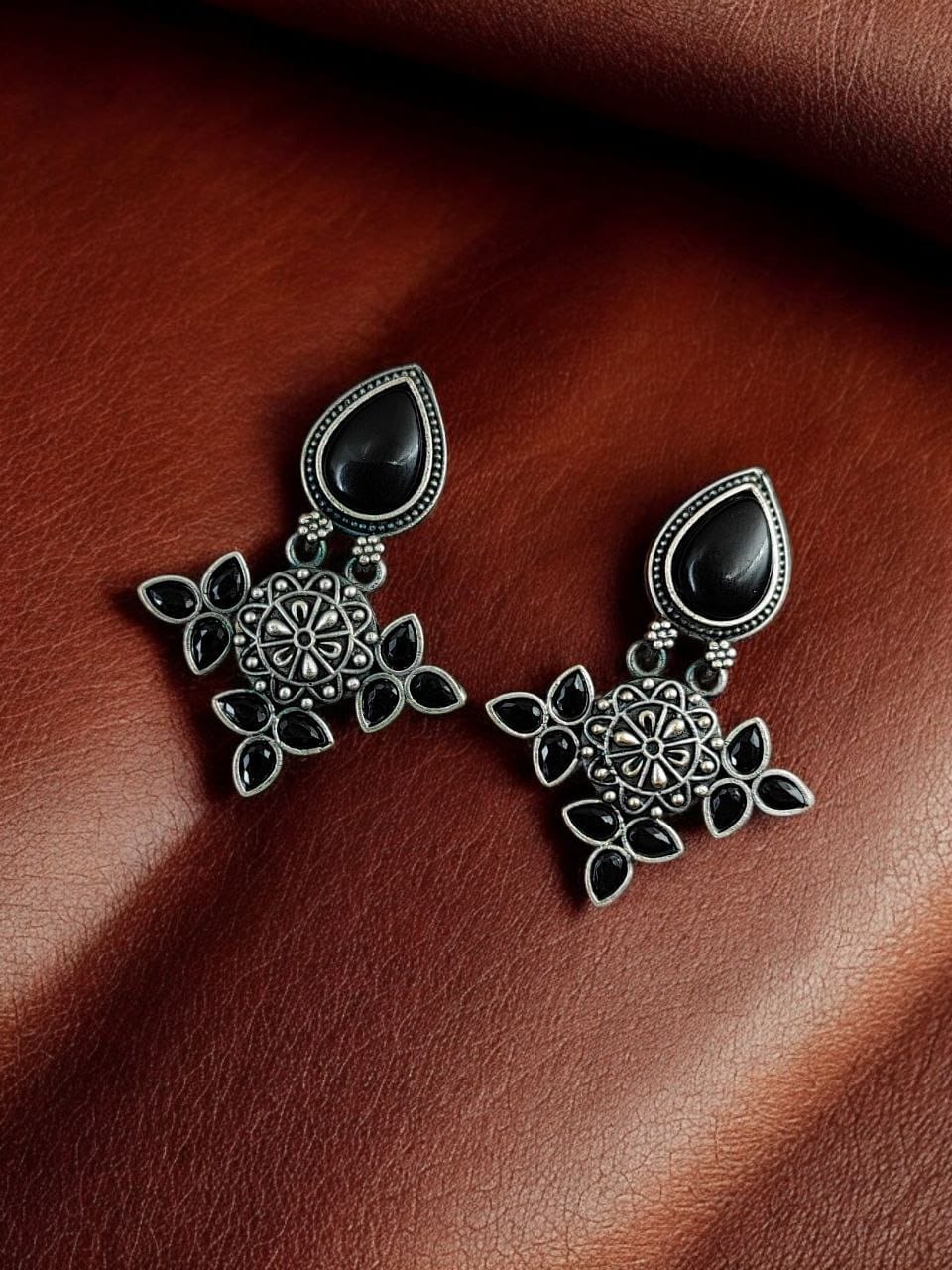 Black Beautiful Ethnic Monalisa Stone Stud Earring Stud Indian Silver-Toned Earring Set Gift for Her