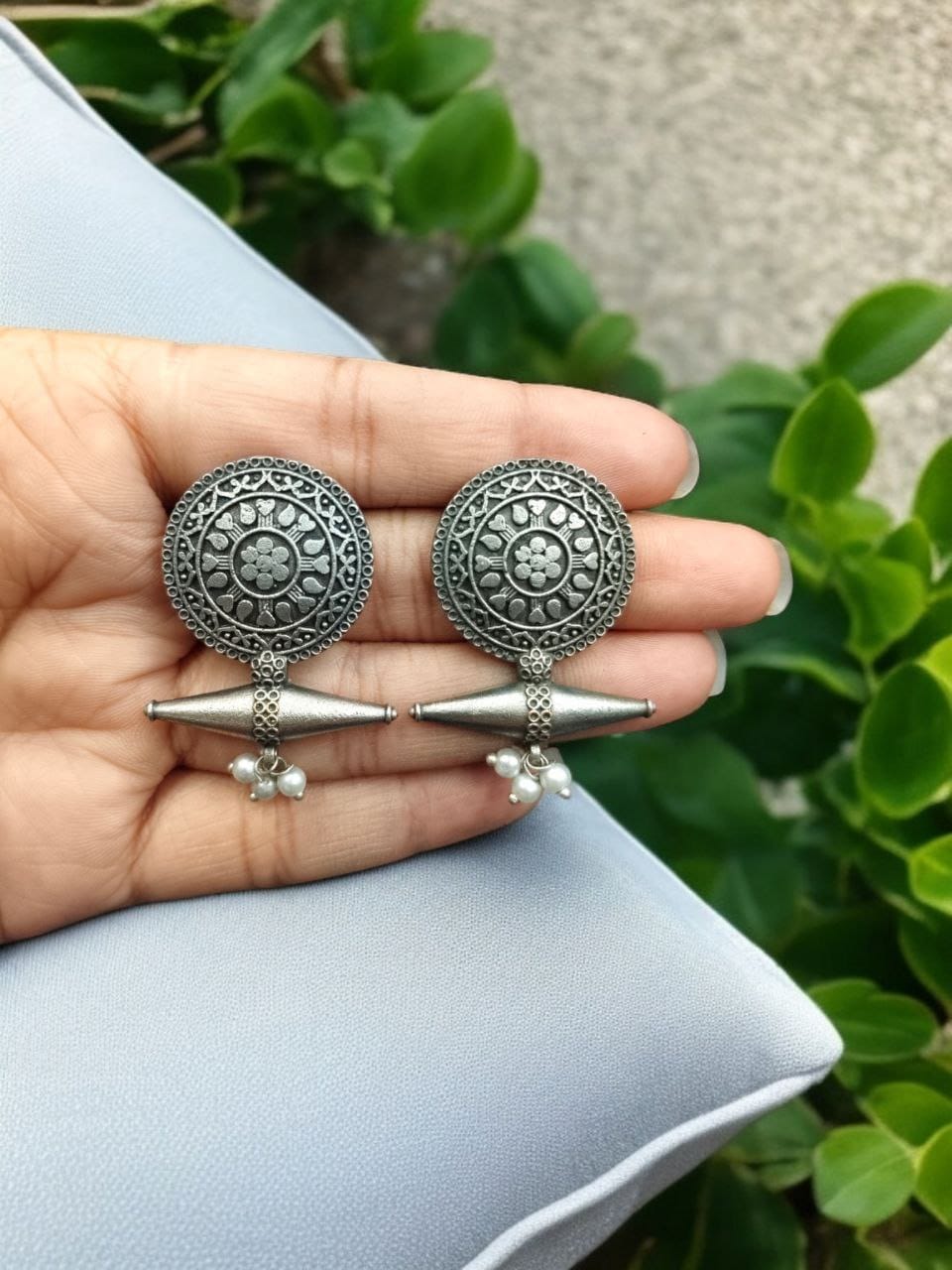 Vintage Tribal Rustic Silver Oxidized Bohochic Designer Stud Earring Set Gypsy Jewellery for Girls