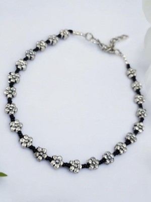 Gorgeous Black Beads Flower Anklet Payal Summer Beach Barefoot Ankle Bracelet for Girls