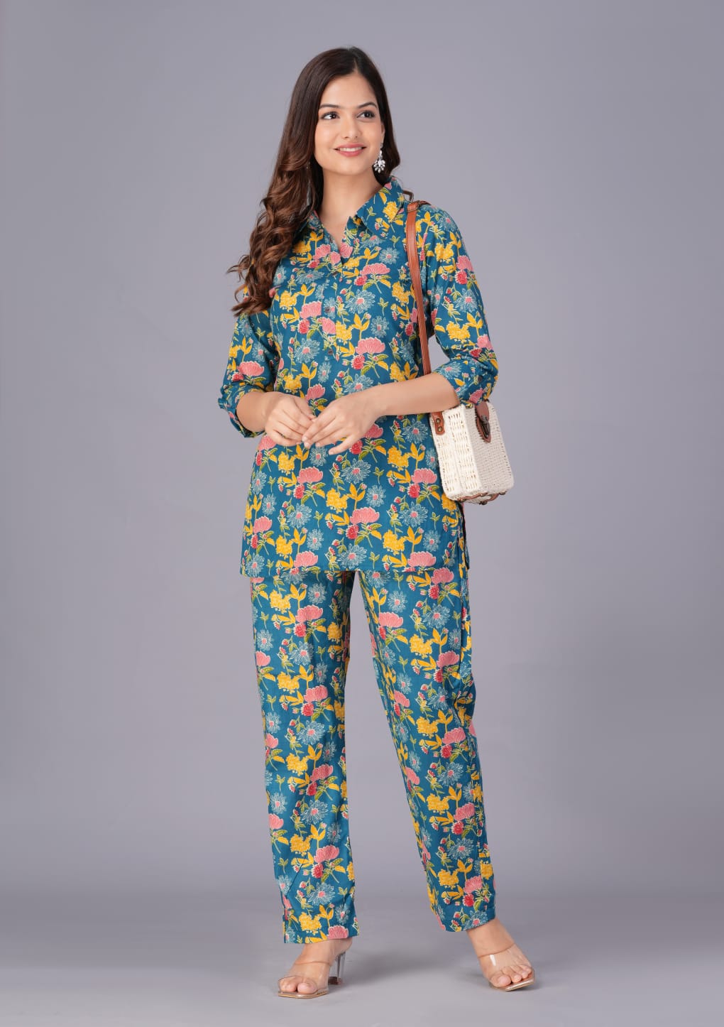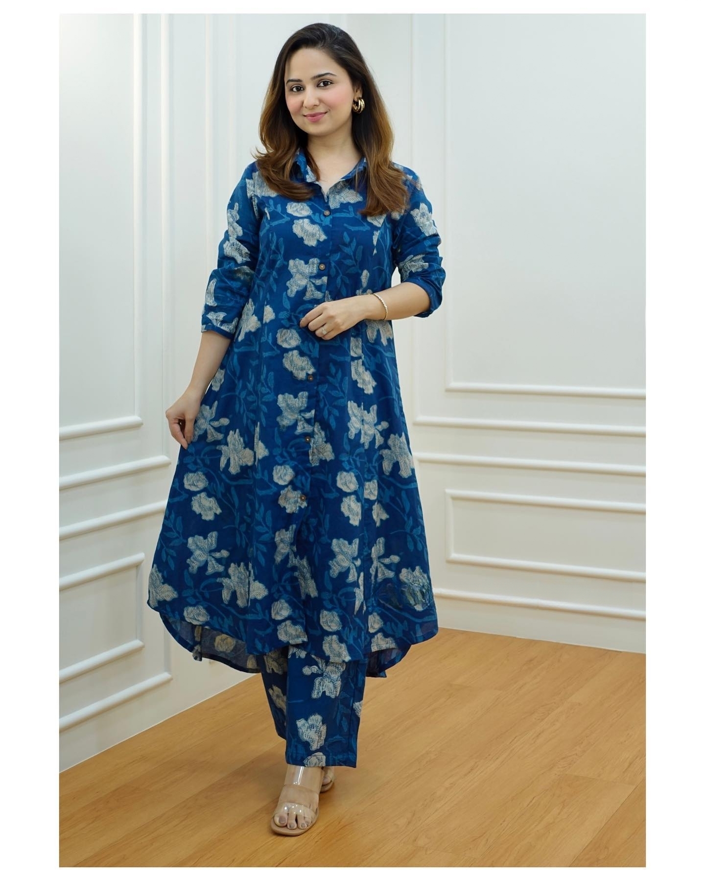 Product LinkCalypso Blue Floral Cotton Co ord Set Kurti Pant Indian Trendy dress for Summer