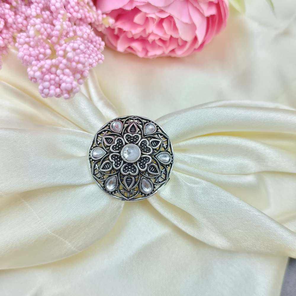 White Ethnic Finger Ring for Women Indian Oxidized Silver Round Adjustable Free Size Brass Fashion Jewelry