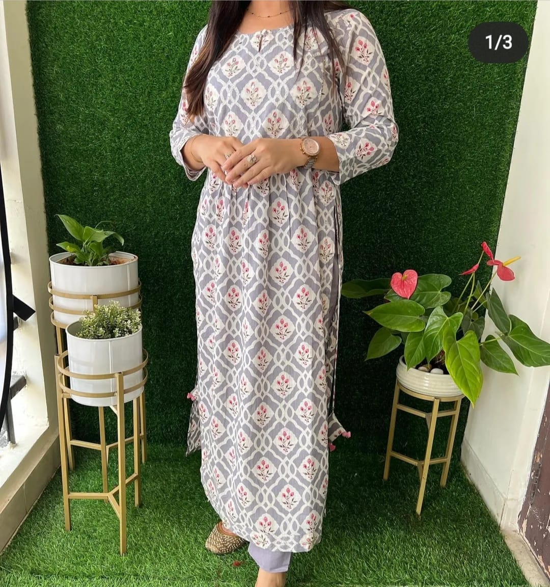 Grey Nayra Cut Kurti Pant Set Straight Salwar Kameez