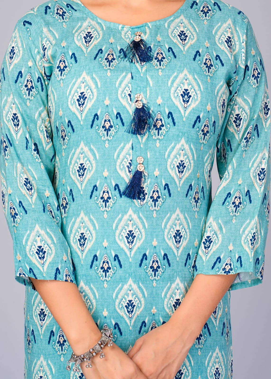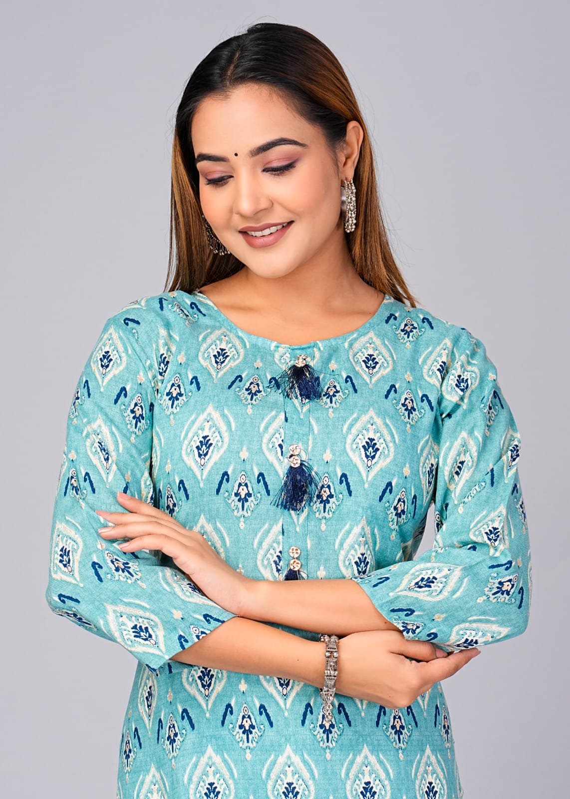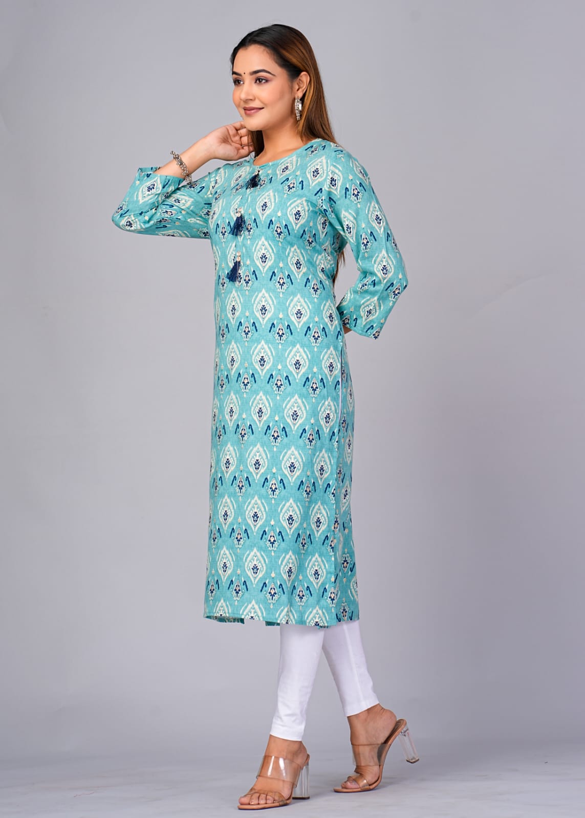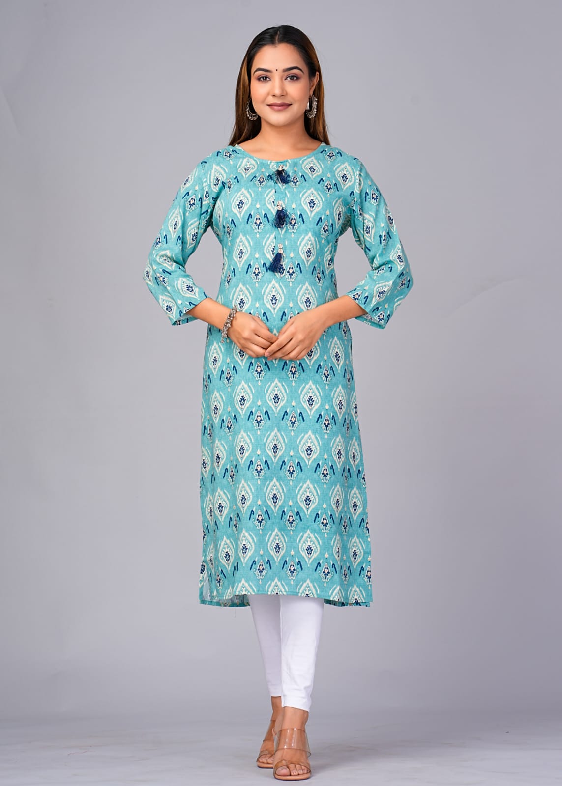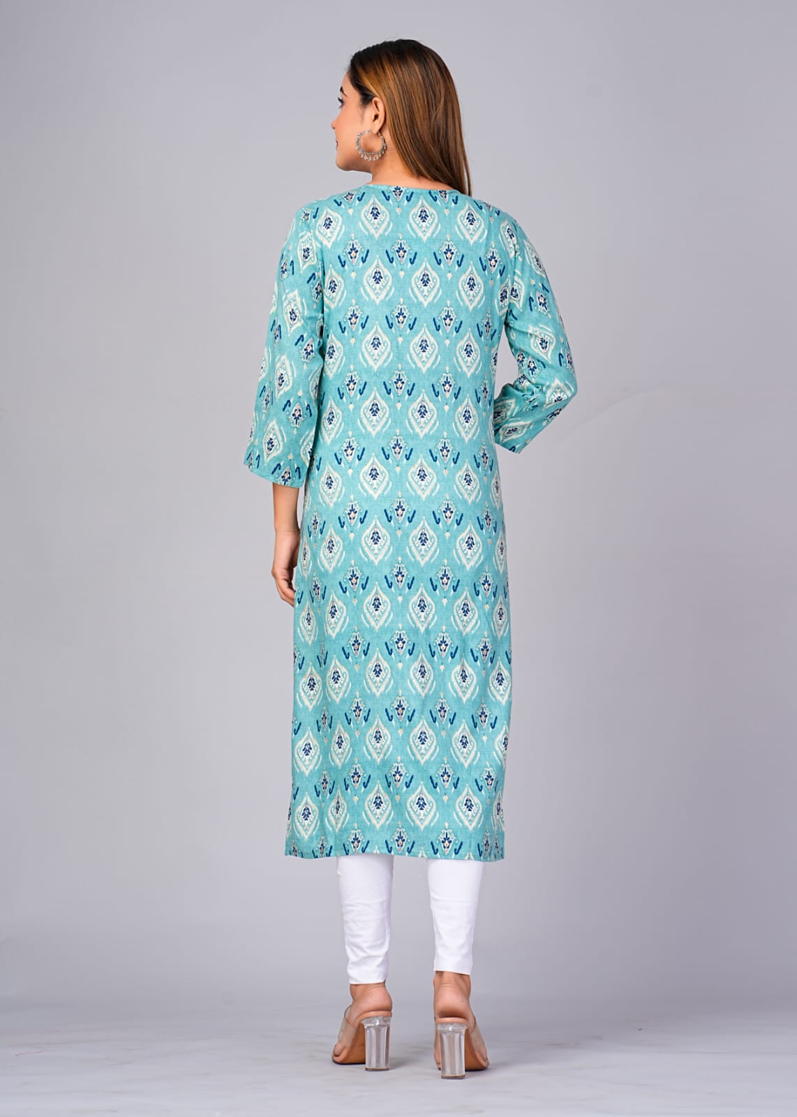 Plus Size Ajrakh Print Straight Kurti Casual Tunic Top for Women