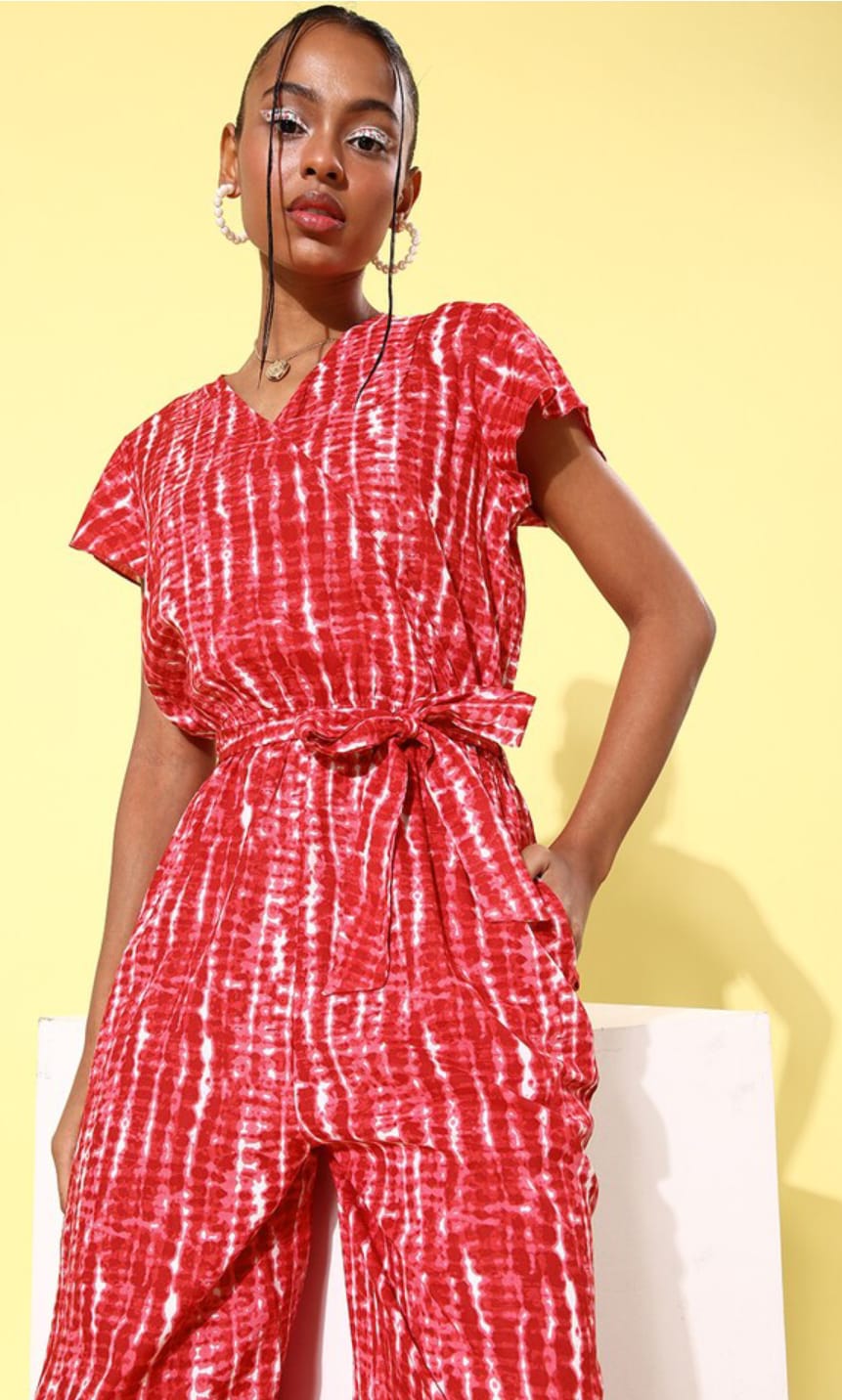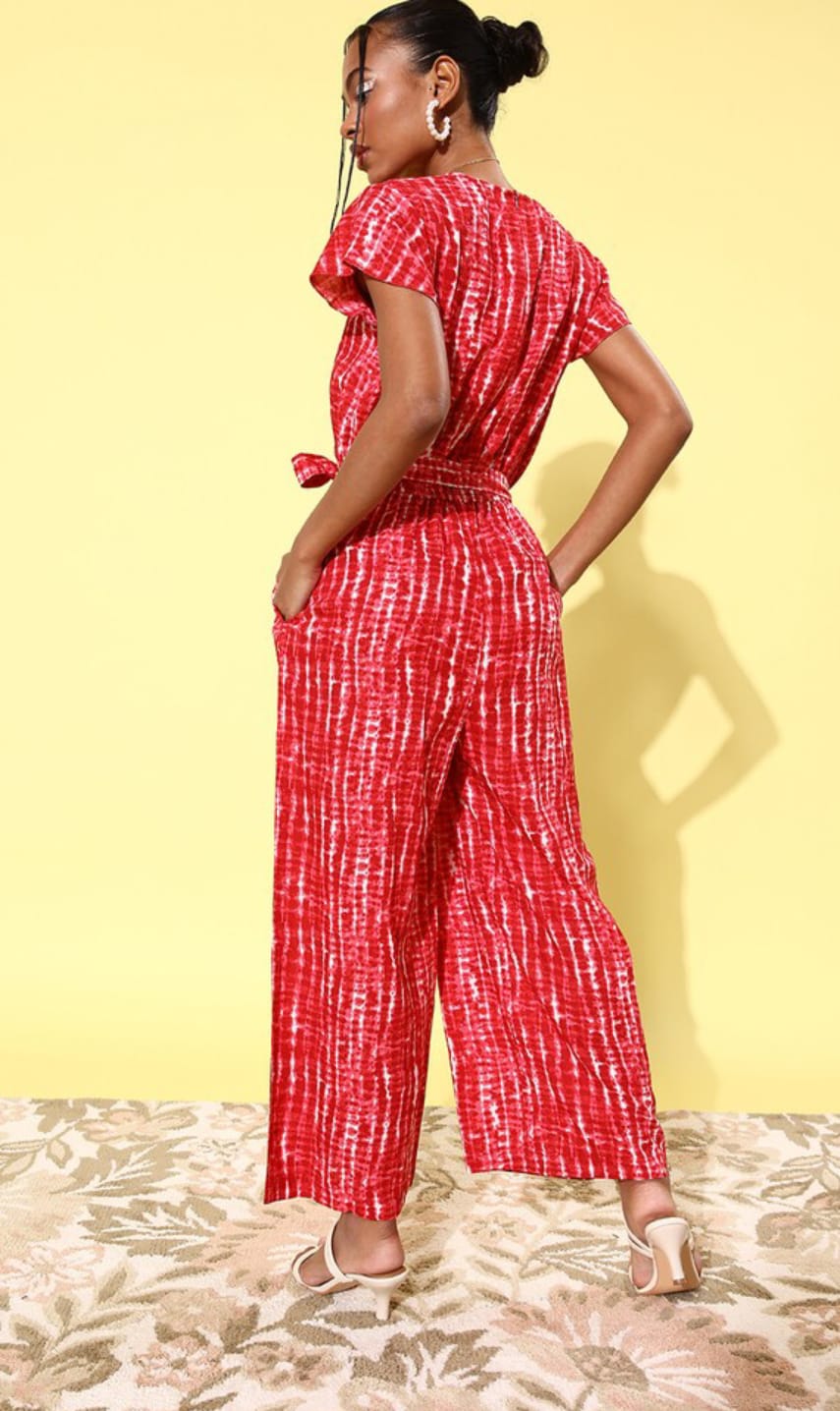 Red Tie Dye Printed Straight Jump Suit Co Ord Set for Women