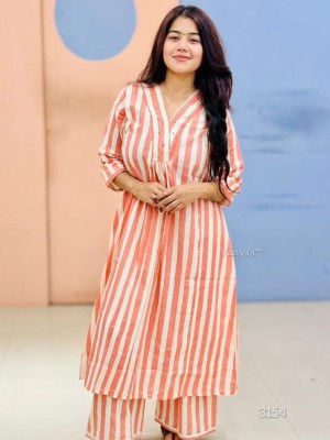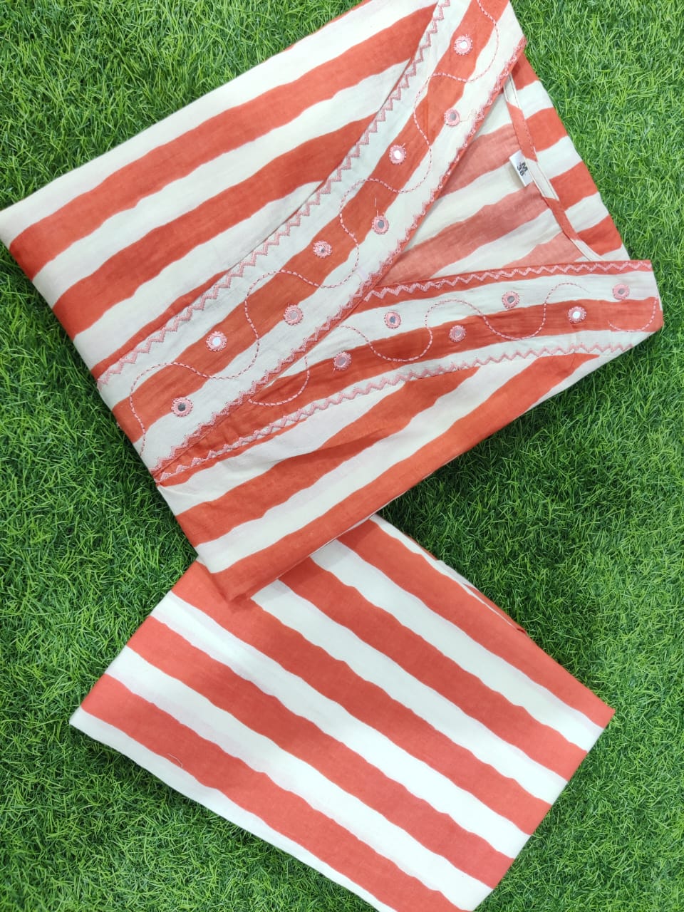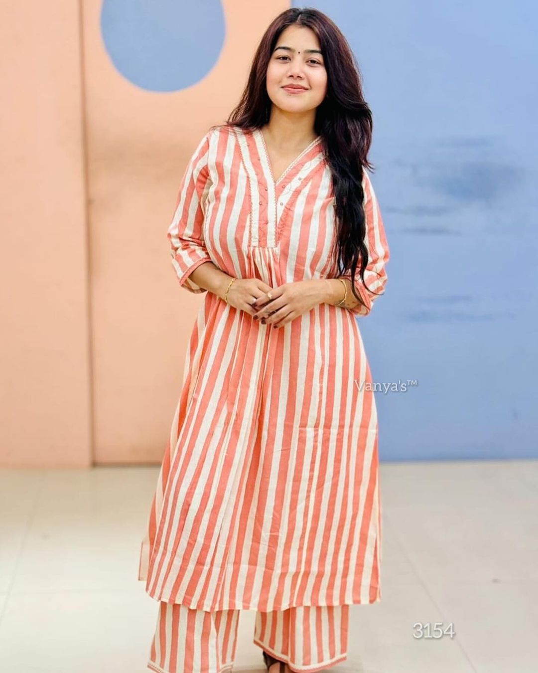 Kriti Pink Striped Printed Embroidered Cotton Kurti Pant Co Ord Set Salwar Kameez