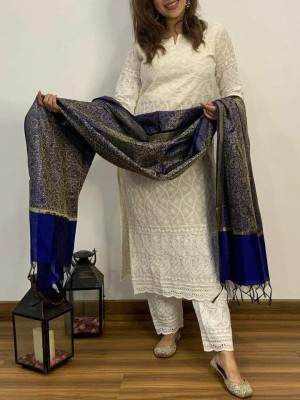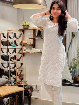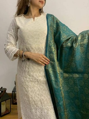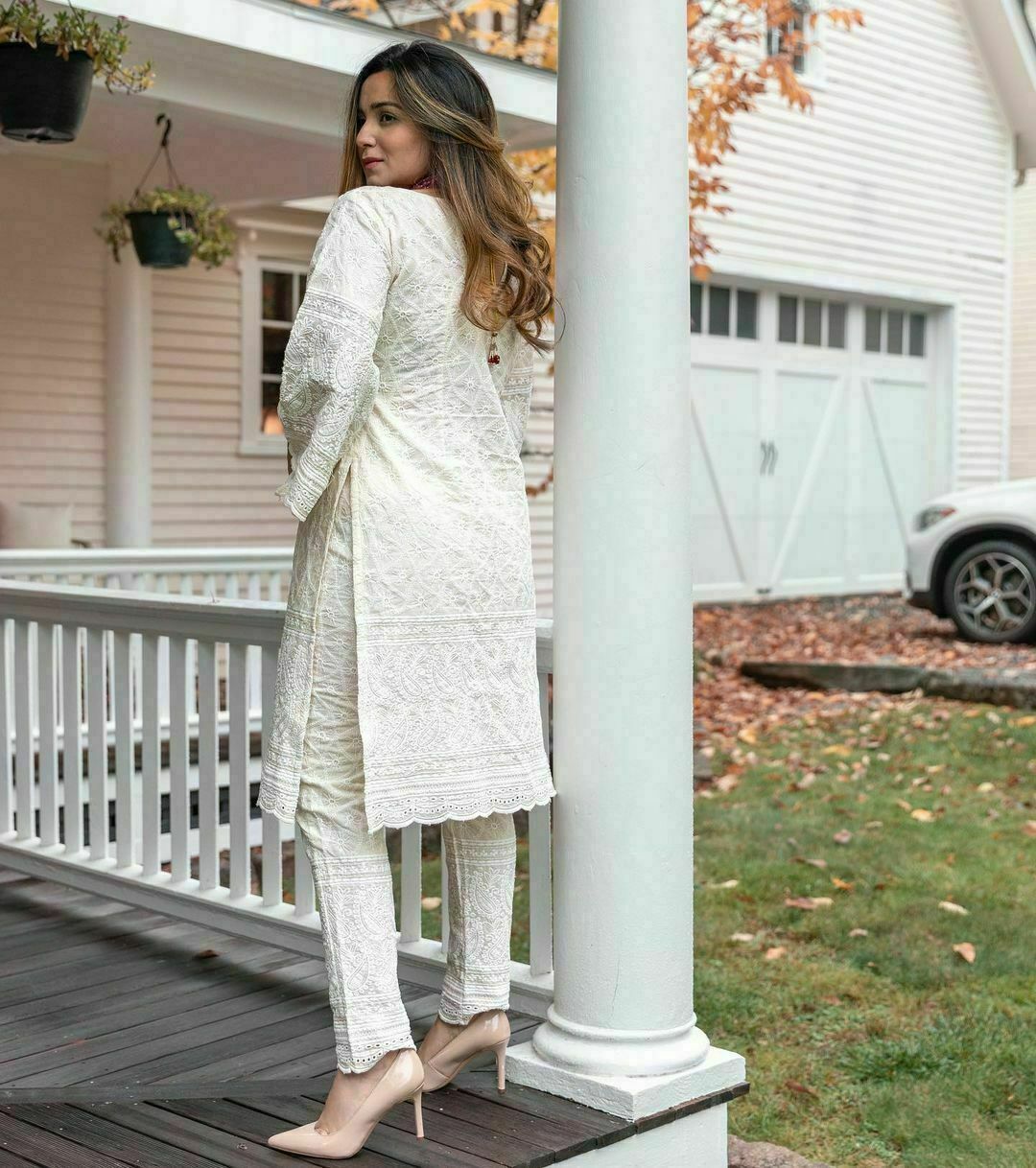 White Indian Pakistani Women Chikankari Kurti Set Salwar Kurta Pant Dress Suit New Set