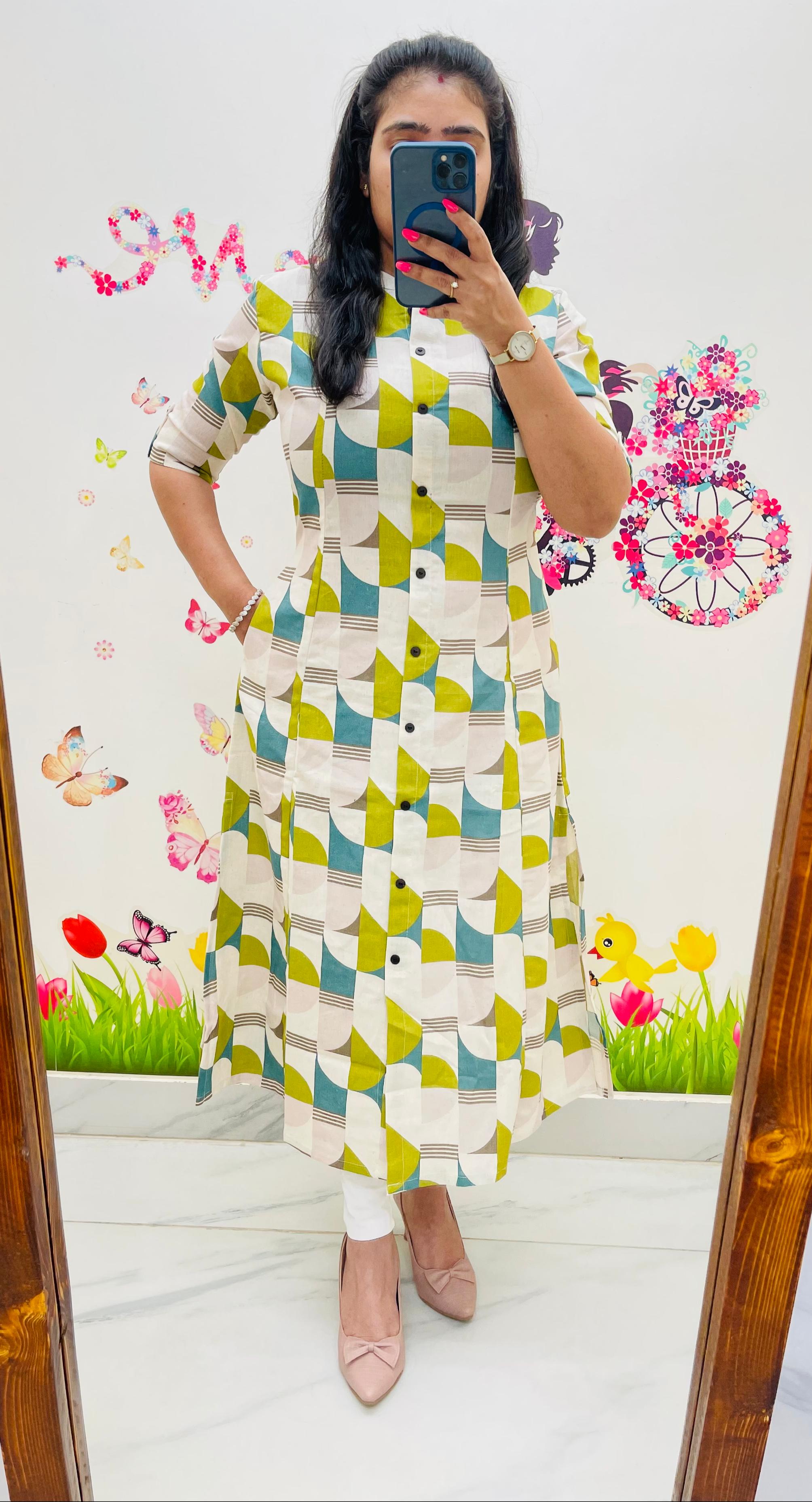 Yellow White Indian Pakistani Traditional Straight Aline Co Ord Set Cotton Salwar Kameez Floral Kurti Pant Set