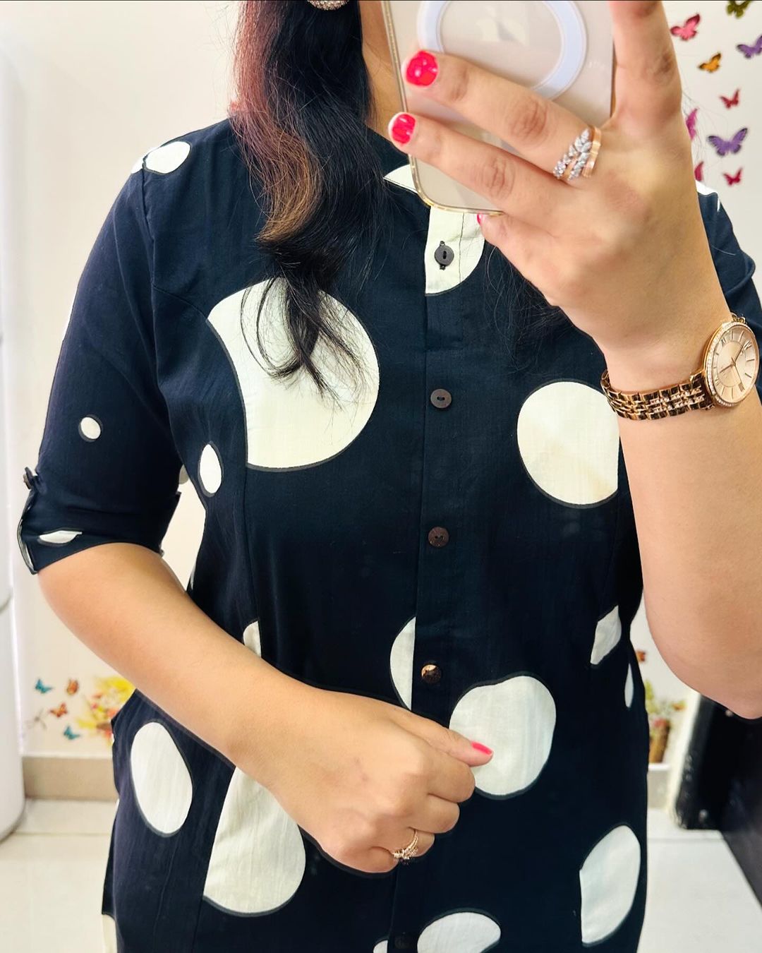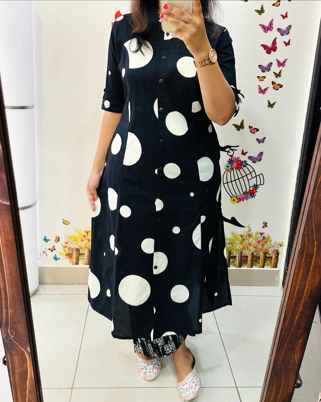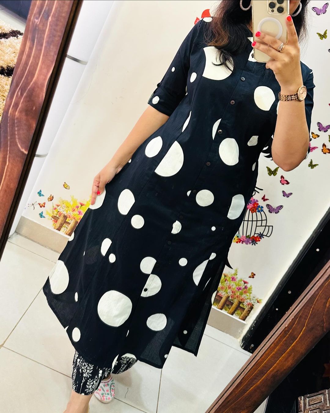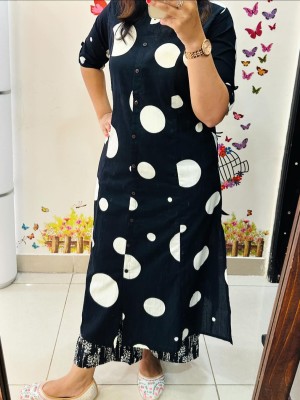 Black Polka Dot Indian Pakistani Straight Aline Co Ord Set Cotton Salwar Kameez Kurti Pant Set