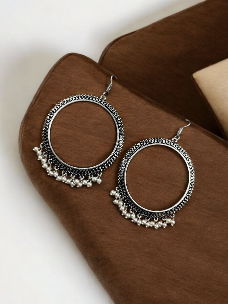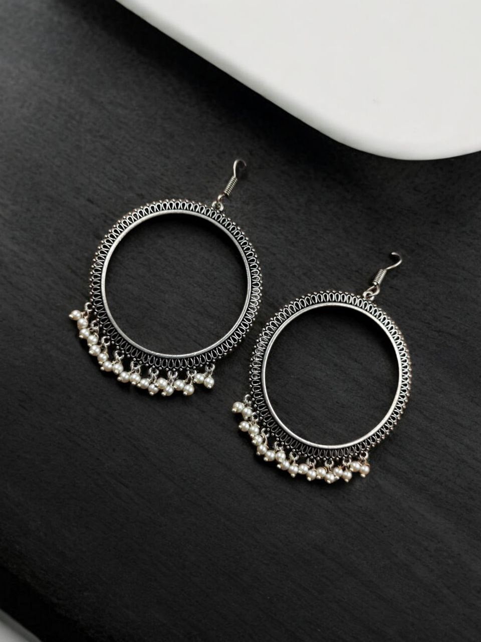 Indian Oxidized Circle Hoop Earrings Light Weight Traditional Dangler Jewelry for Girls