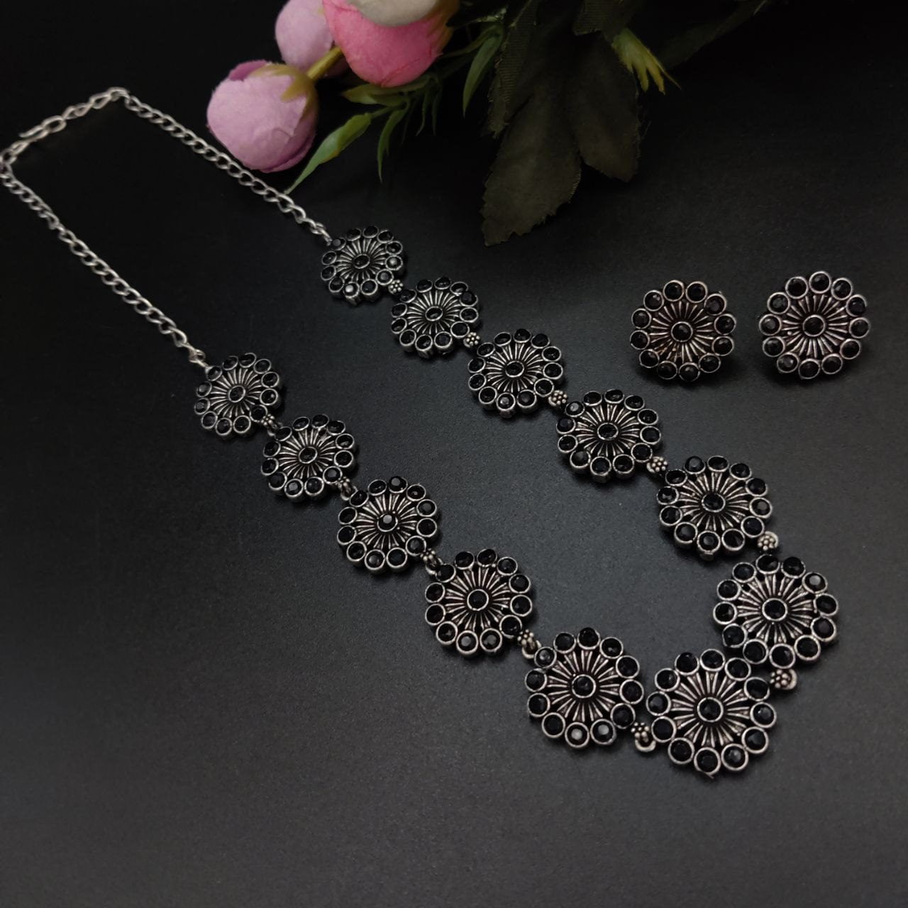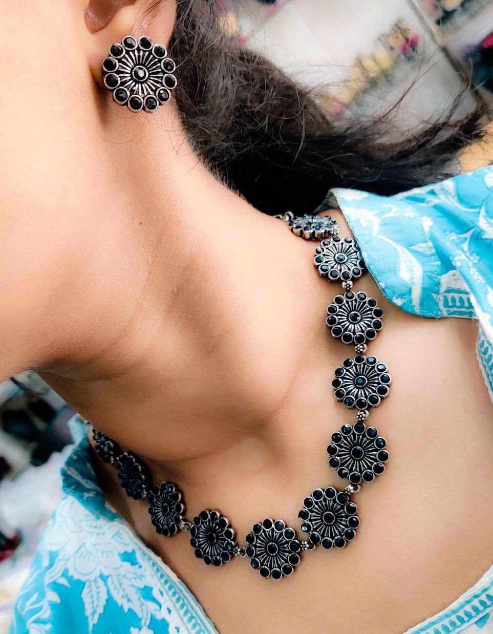 • Classic look Silver Oxidised Necklace Set with Earrings for women to wear.