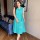 • Blue Office Wear Check Sleeveless Collared Midi Belt Gown Embroidered Kurti Dress for Women