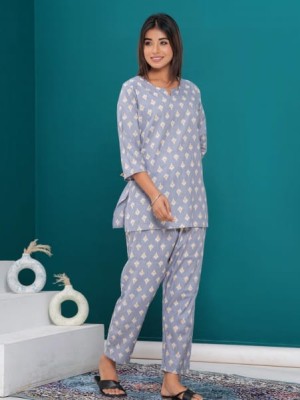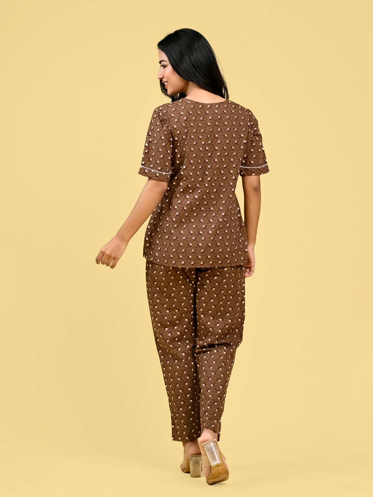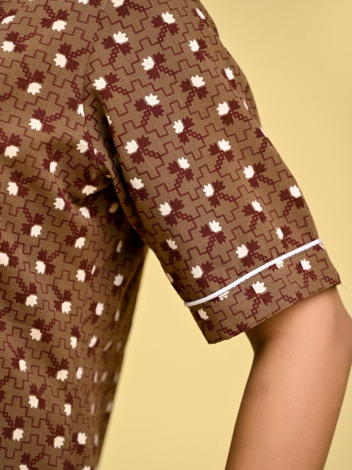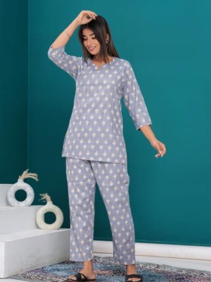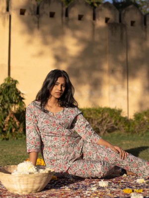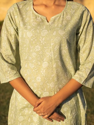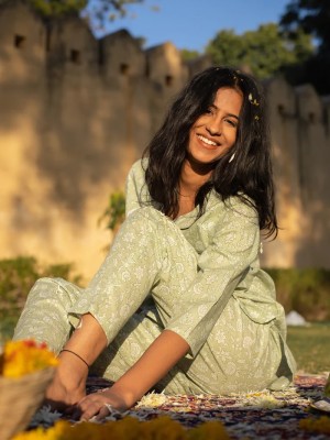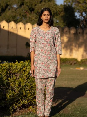 Green Cotton Nightwear Dress Kurti Pyjama Co Ord Set for Summer Night