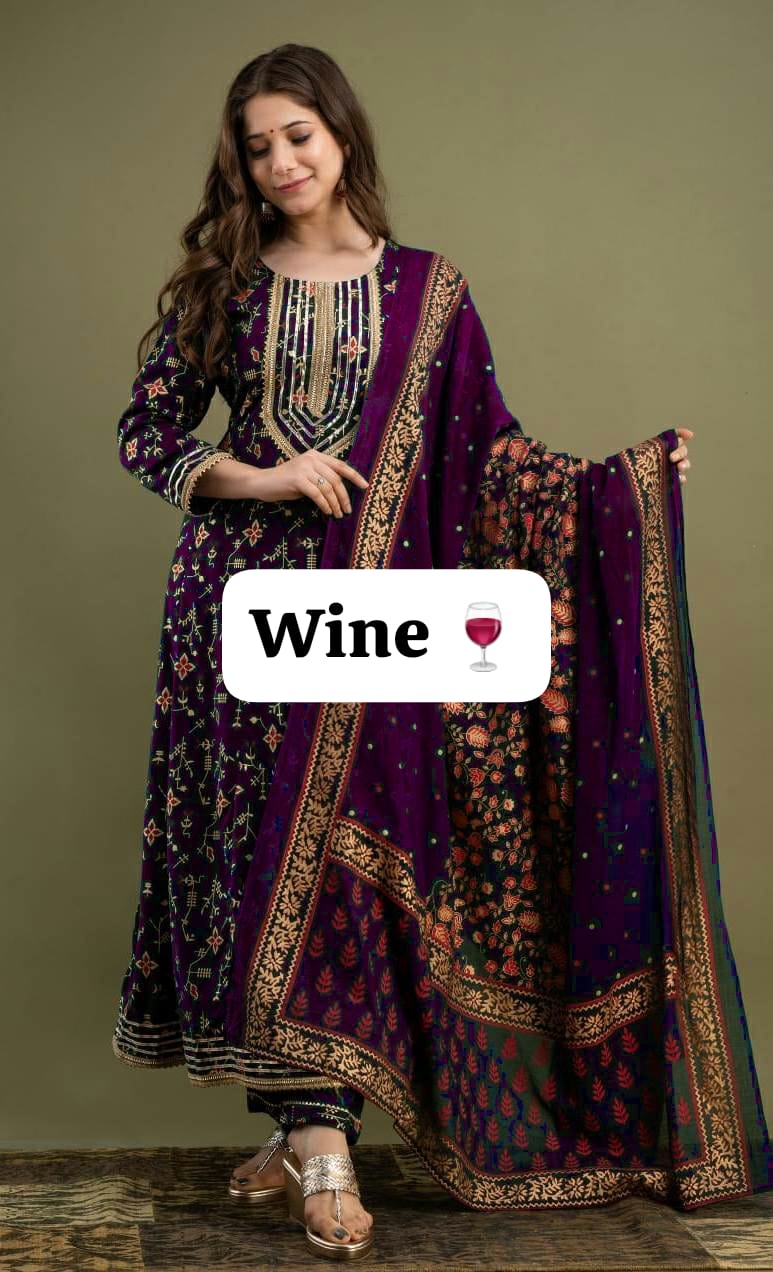Wine Color Plus Size Floral Printed Anarkali Style Kurti Pant Dupatta Salwar Kameez Suit Online