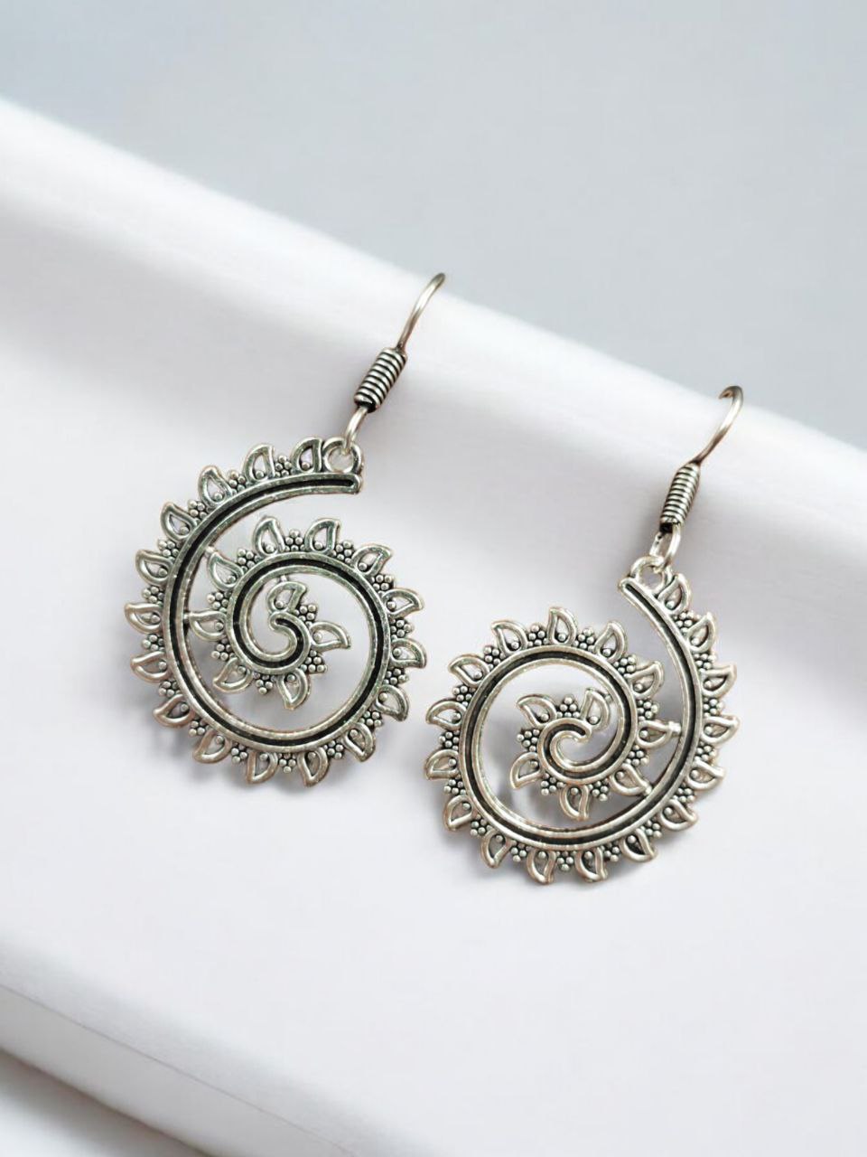 Silver Oxidized Spiral Hook Earrings Light Weight Jewelry for Women