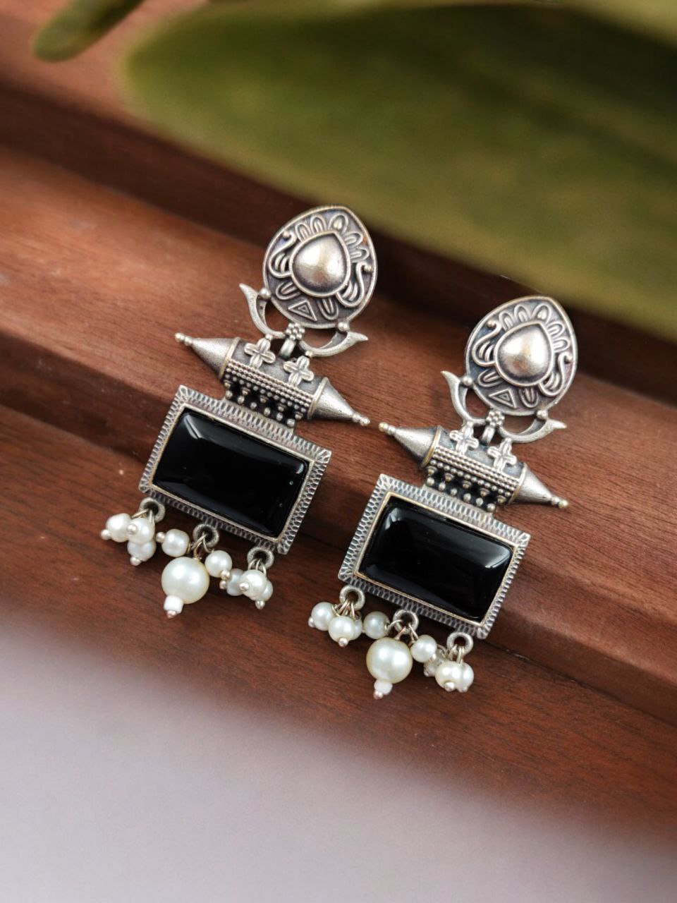 Black Antique Gypsy Silver Replica Brass Oxidized Monalisa Stones Stud Trendy Indian Boho Jewellery
