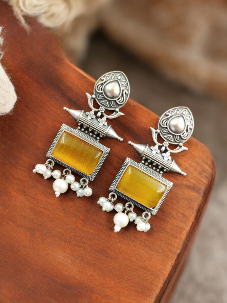 Yellow Antique Gypsy Silver Replica Brass Oxidized Monalisa Stones Stud Trendy Indian Boho Jewellery