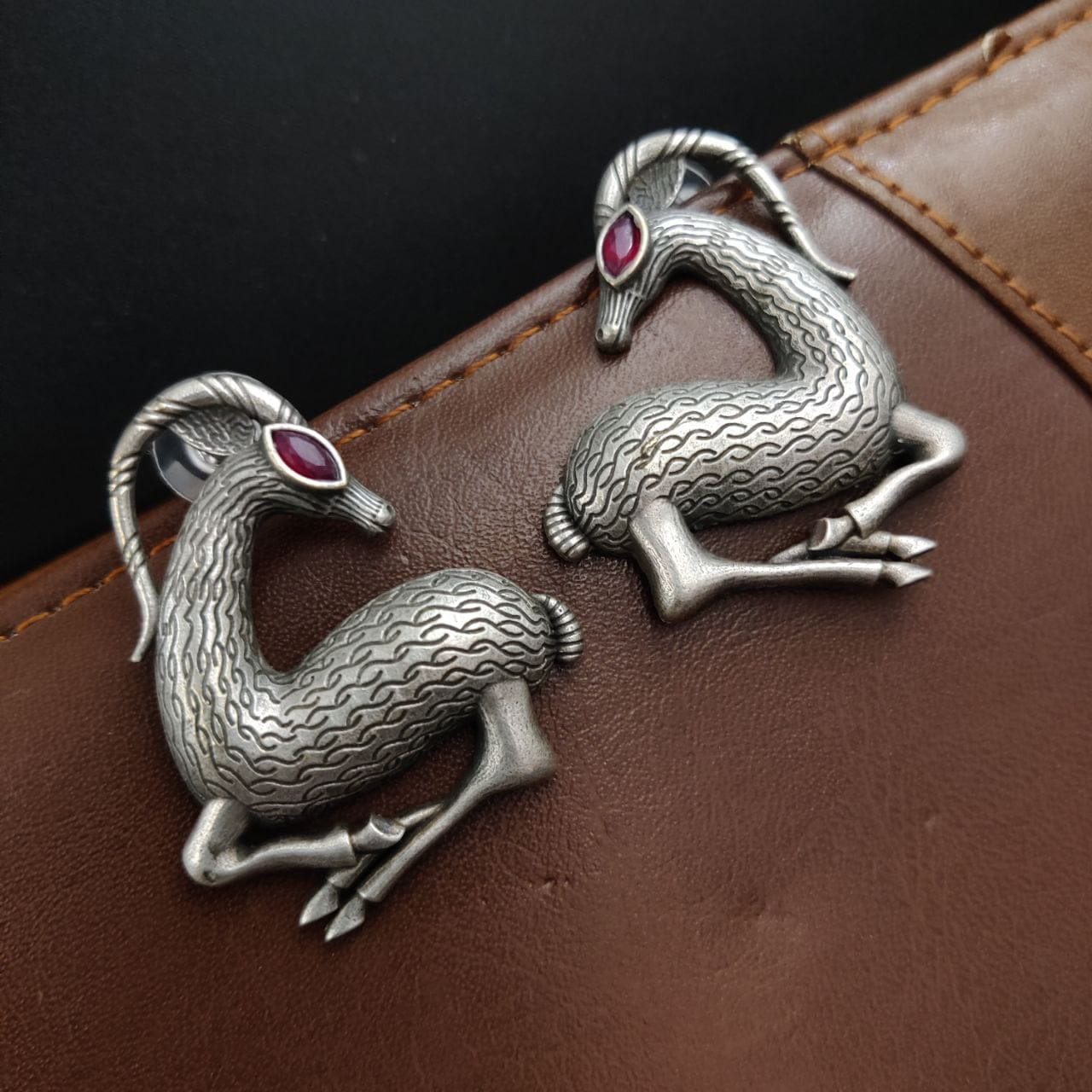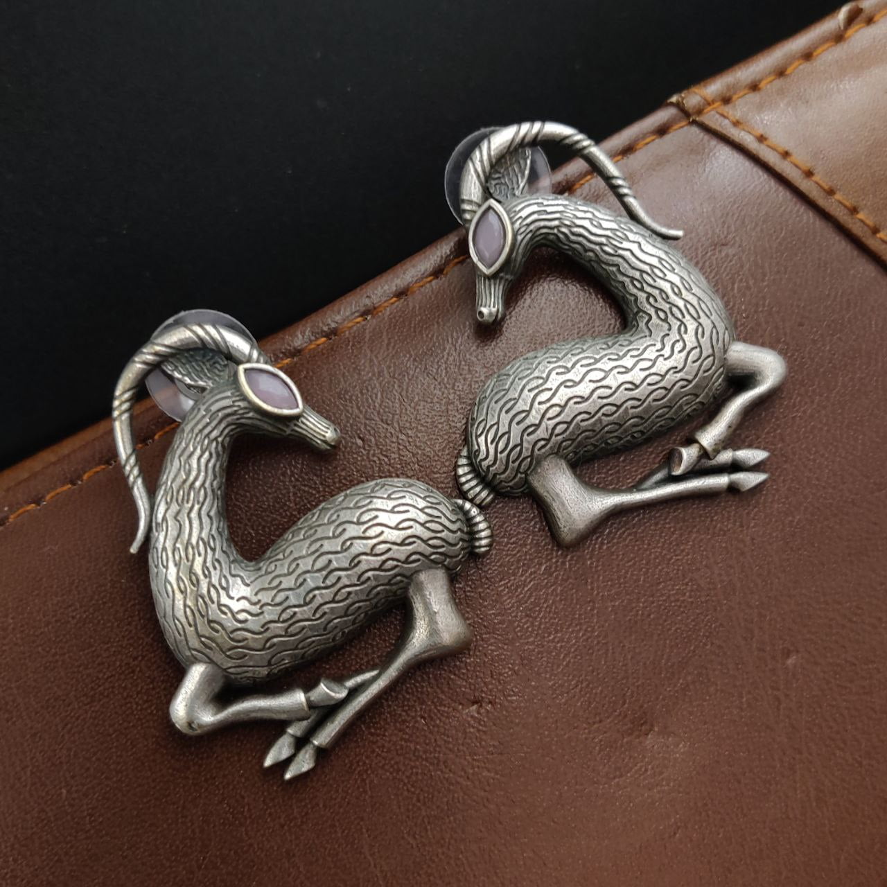 Spiral Horned Deer Earrings Silver Replica Brass Stud Boho Animal Earrings for Girls