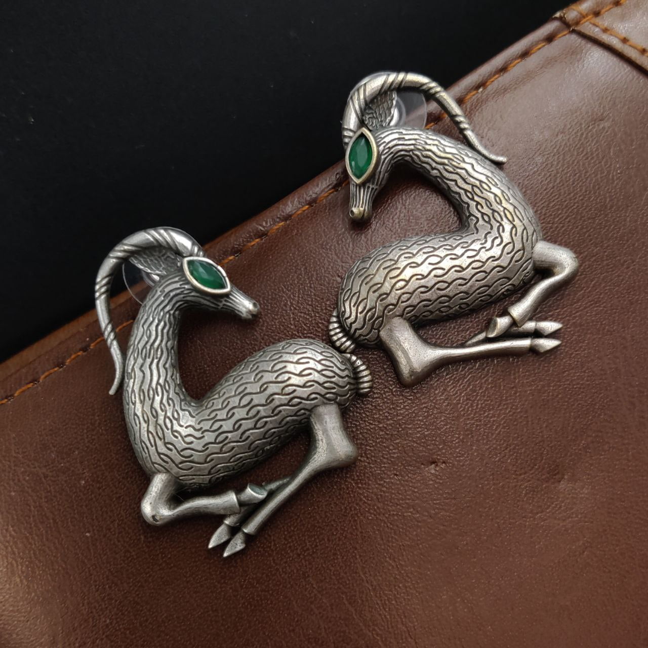 Green Spiral Horned Deer Earrings Silver Replica Brass Stud Boho Animal Earrings for Girls