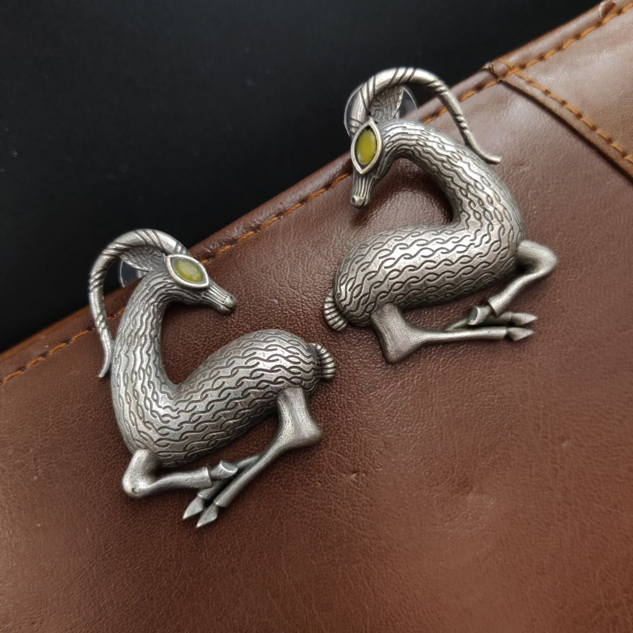 Yellow Spiral Horned Deer Earrings Silver Replica Brass Stud Boho Animal Earrings for Girls
