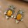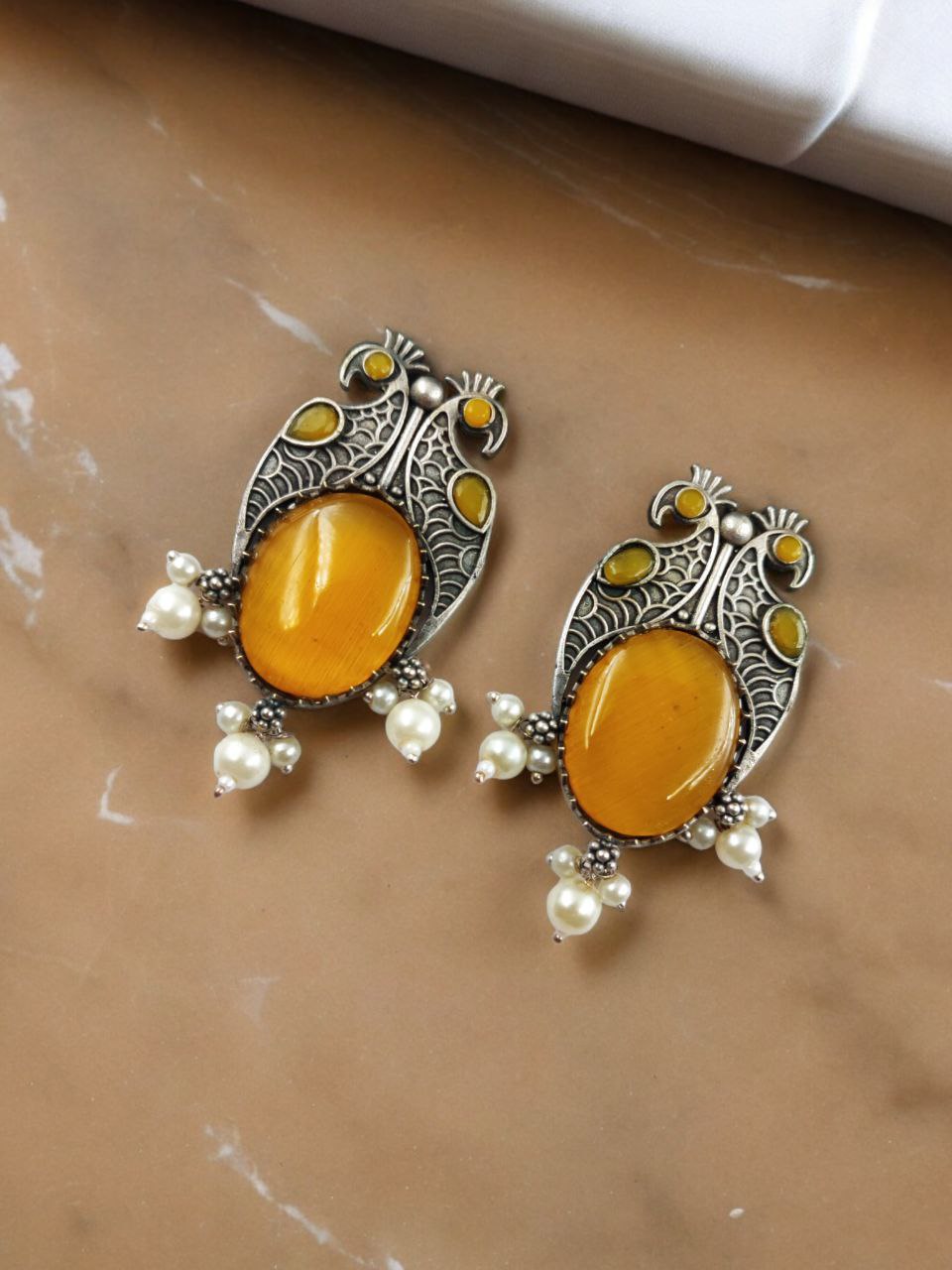 Yellow Rustic Indian Peacock Silver Oxidised Stud Monalisa Stone Pearl Beads Boho Earrings