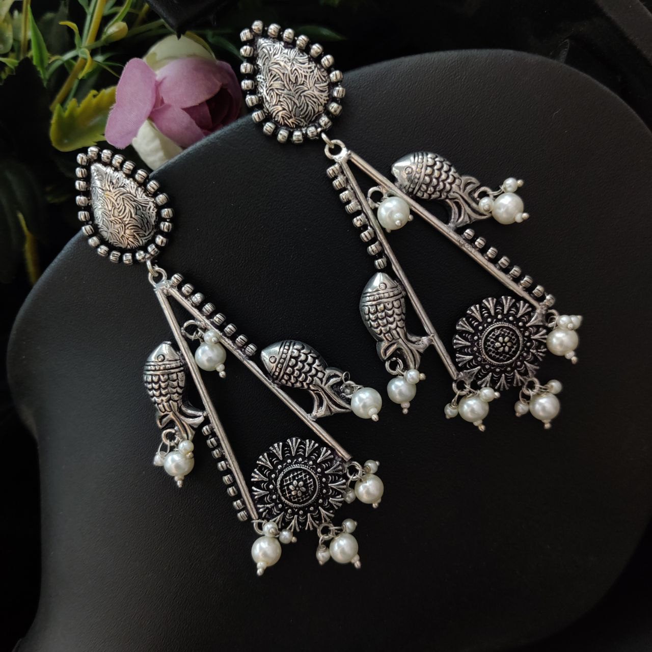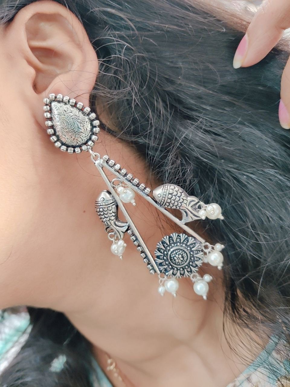 Bohemian Handcrafted Silver Plated Oxidised Long Dangler Earring Indian Jewelry