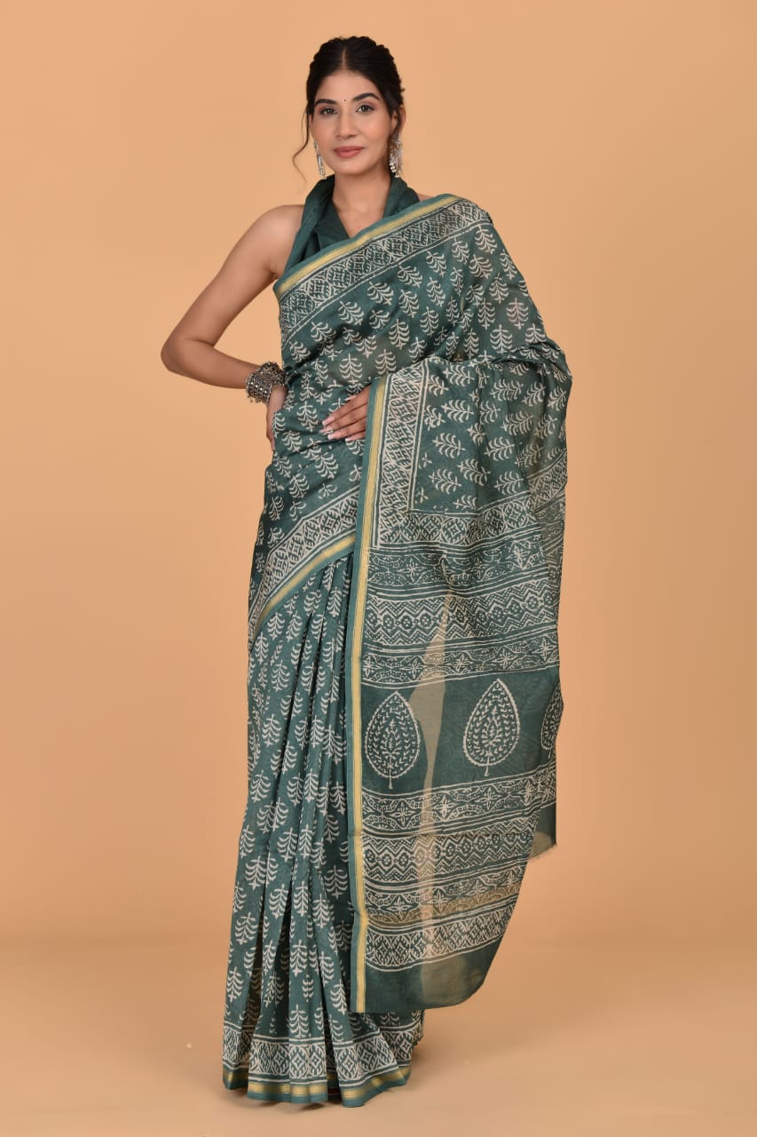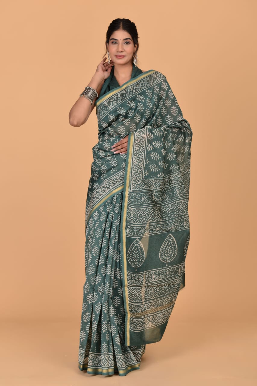 Enhance your wardrobe with our New Hand Block Printed Chanderi Silk Saree, a beautiful blend of tradition and elegance. Crafted from premium Chanderi silk, this saree features intricate hand block prints, showcasing timeless artistry. Measuring 5.5 meters in length, it drapes gracefully, while the 1-meter unstitched blouse piece allows for a customized fit. Lightweight and breathable, this saree is perfect for both casual and festive occasions. Its vibrant patterns make it a versatile and stylish addition to any ethnic collection.