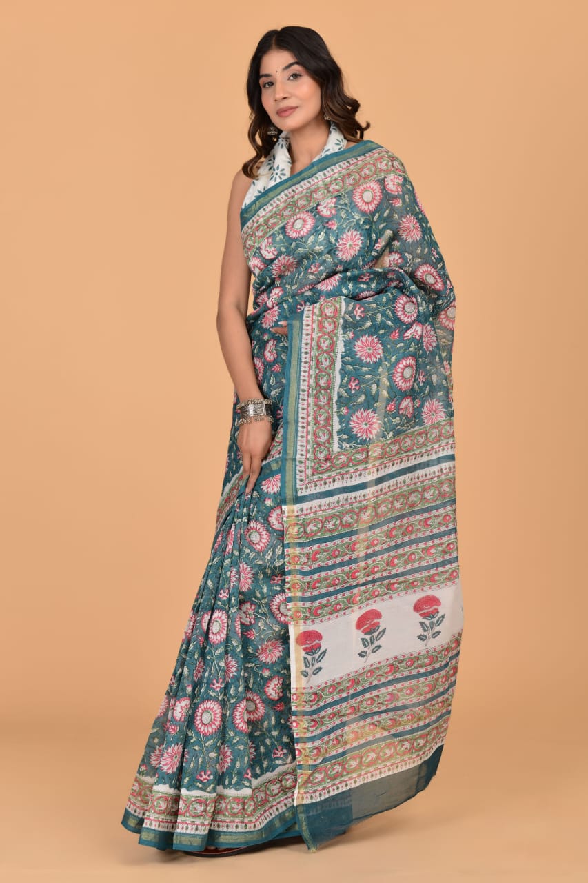 Enhance your wardrobe with our New Hand Block Printed Chanderi Silk Saree, a beautiful blend of tradition and elegance. Crafted from premium Chanderi silk, this saree features intricate hand block prints, showcasing timeless artistry. Measuring 5.5 meters in length, it drapes gracefully, while the 1-meter unstitched blouse piece allows for a customized fit. Lightweight and breathable, this saree is perfect for both casual and festive occasions. Its vibrant patterns make it a versatile and stylish addition to any ethnic collection.