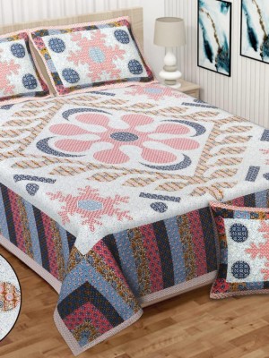 Multi Floral Luxury Cotton Printed Bed Sheet with 2 Pillow Covers - for King Size Bed