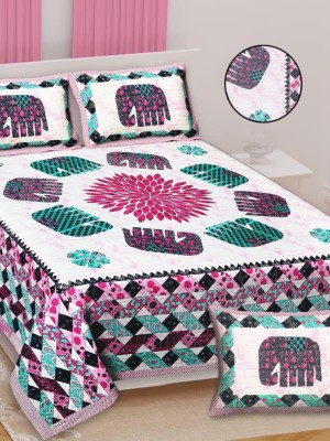 • Elephant Rajasthani Jaipuri Royal Print Cotton Multi Color Printed Bed Sheet with 2 Pillow Covers - for King Size Bed