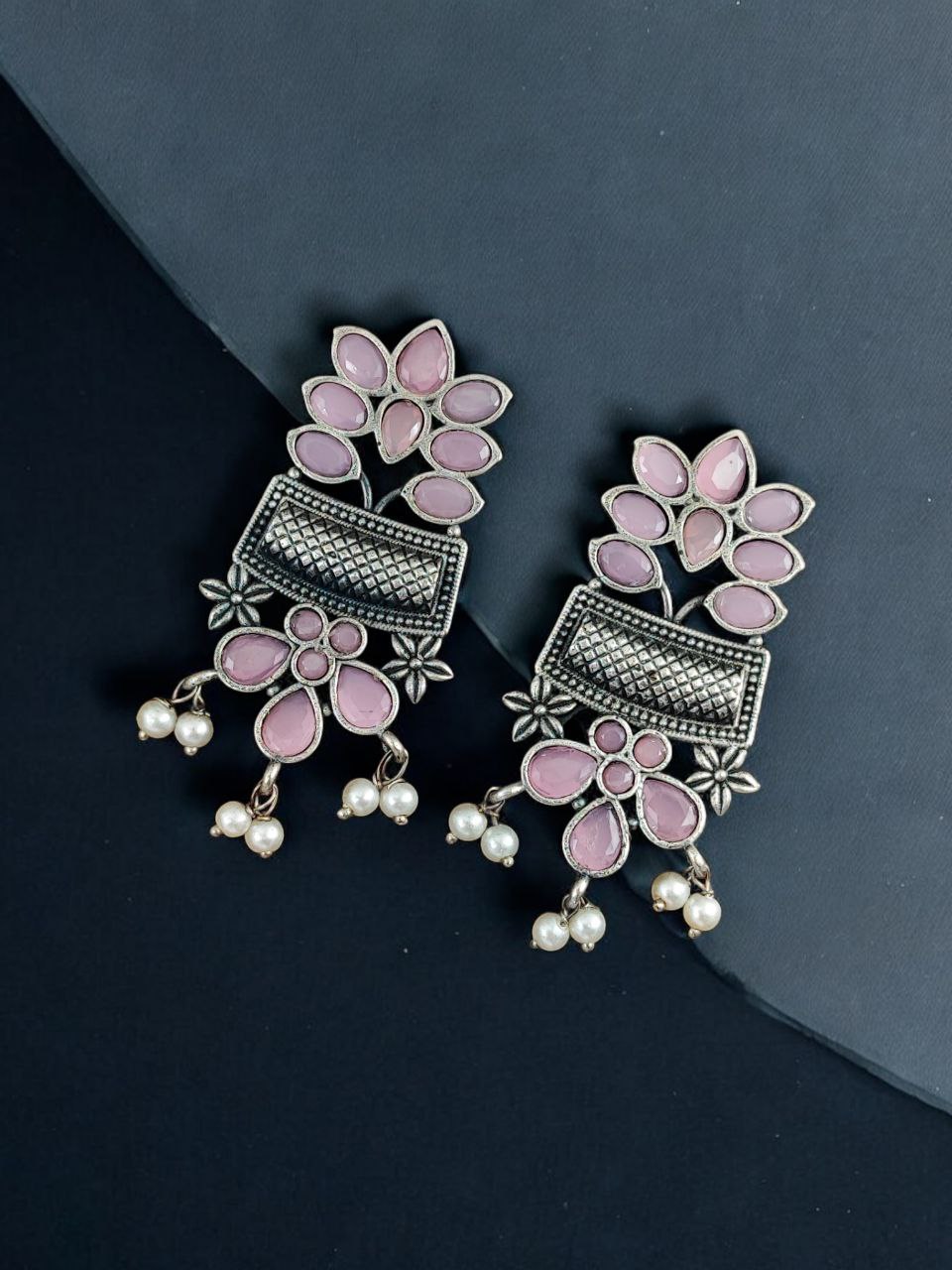 Babypink Elegant Designer Dangler Silver Oxidised Stud Earrings Pearls Drop Gypsy Jewelry for Girls