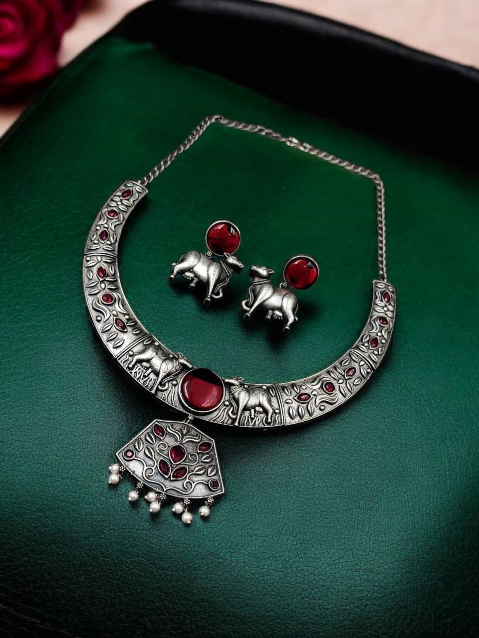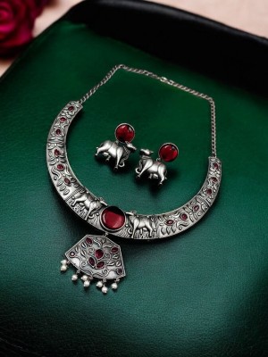 Vintage Gypsy Hasli Jewellery Kamdhenu Cow Design Traditional Indian Silver Oxidized Choker Necklace