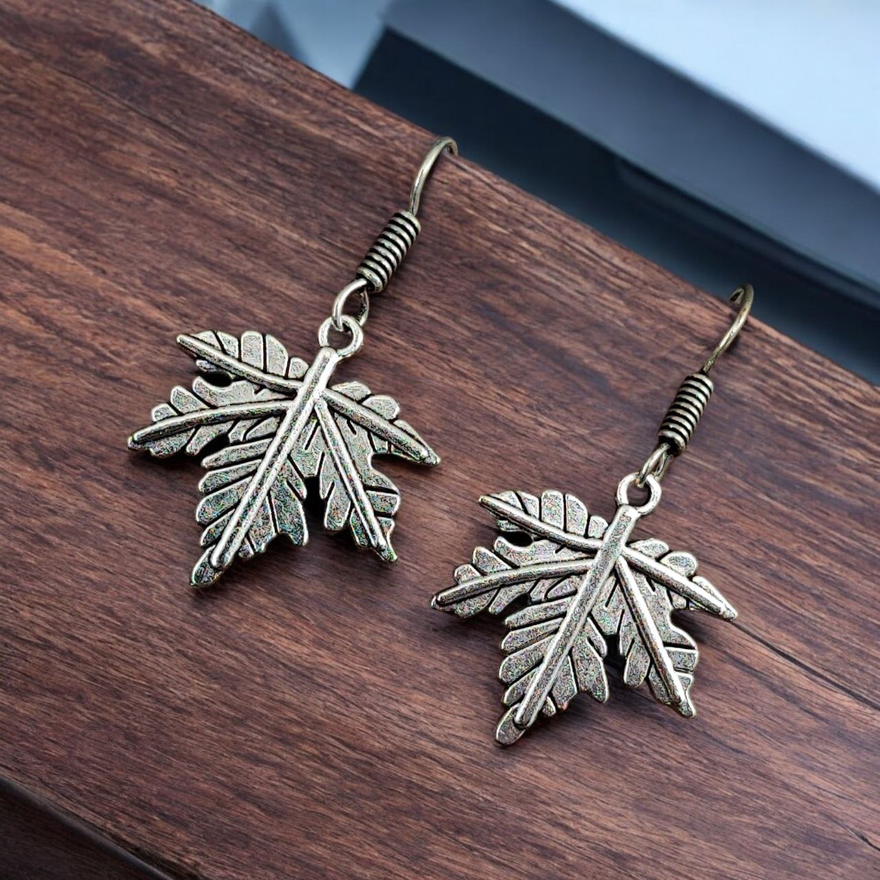 Maple Leaf Drop Dangler Silver Oxidized Minimalist Nature Earrings Seasonal Fall Jewelry