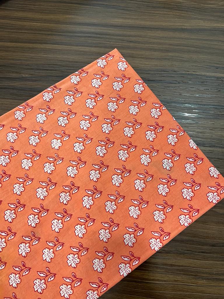 Orange Indian Hand Block Booti Printed Running Soft Fabric by Yard Cotton Dressmaking Quilting Sewing Craft Fabric Material