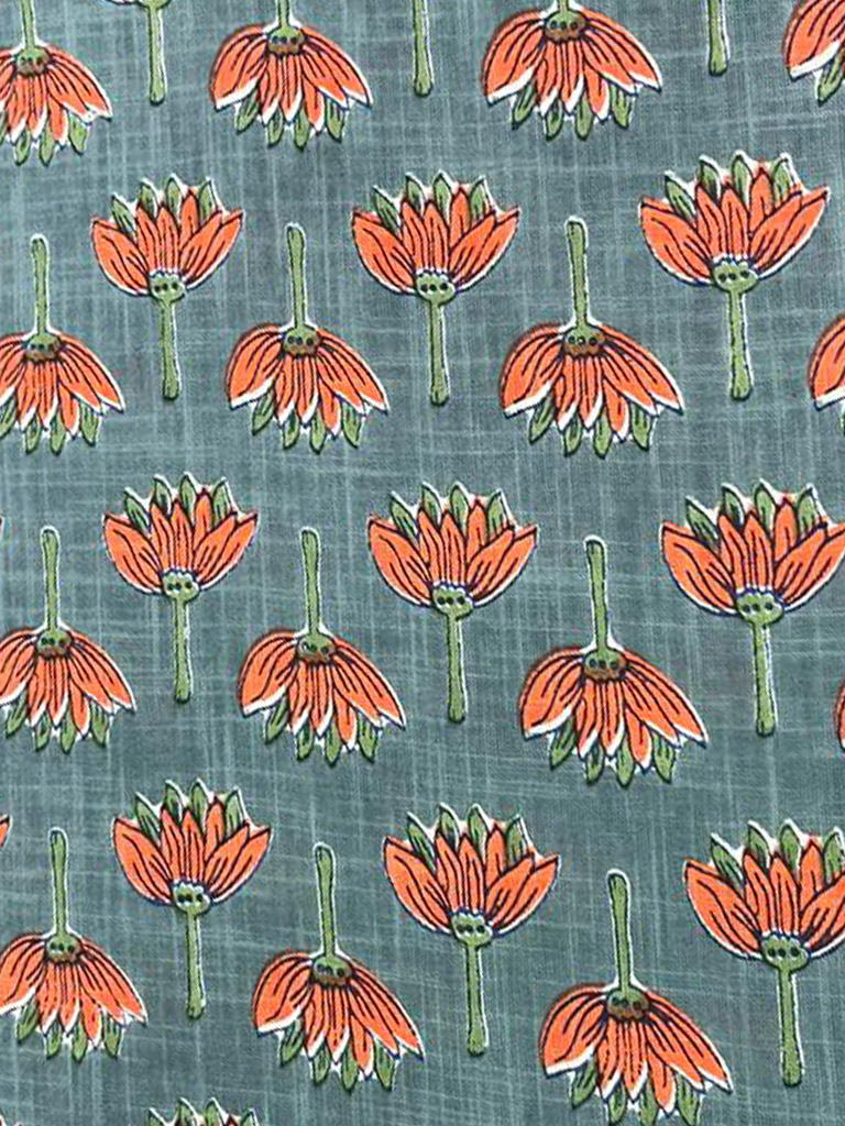 Grey Indian Hand Block Flower Printed Running Soft Fabric by Yard Cotton Dressmaking Quilting Sewing Craft Fabric Material
