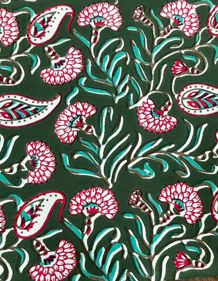 Green Indian Hand Block Floral Printed Upholstery Fabric 100% Cotton Craft Dressmaking Quilting Fabric Material