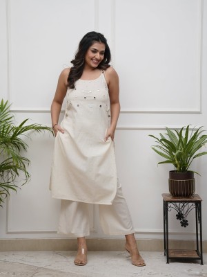 Pleasant White Western Embroidered Kurti Partywear Cotton Anarkali Gown Dress
