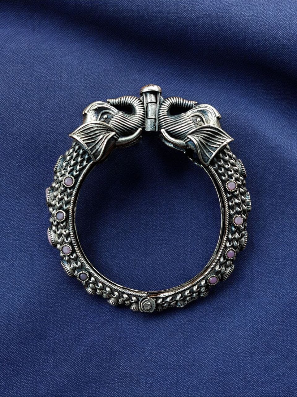 Babypink Bohochic Elephant Kangan Adjustable Cuff Bracelet Bohemian Oxidised German Silver Bangle for Girls