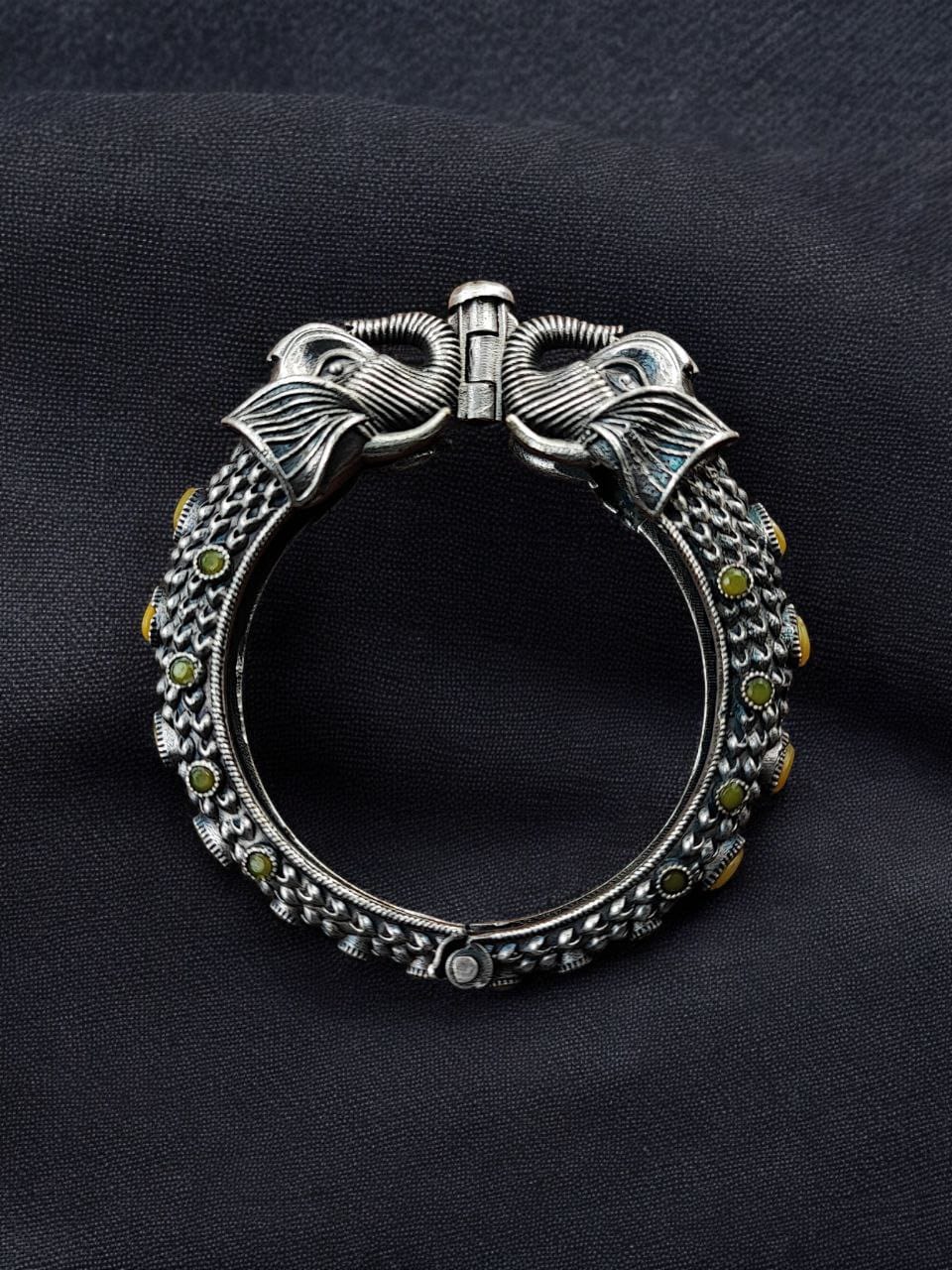 Green Bohochic Elephant Kangan Adjustable Cuff Bracelet Bohemian Oxidised German Silver Bangle for Girls