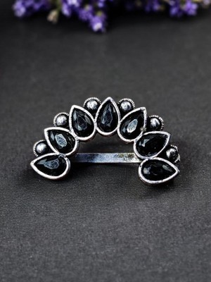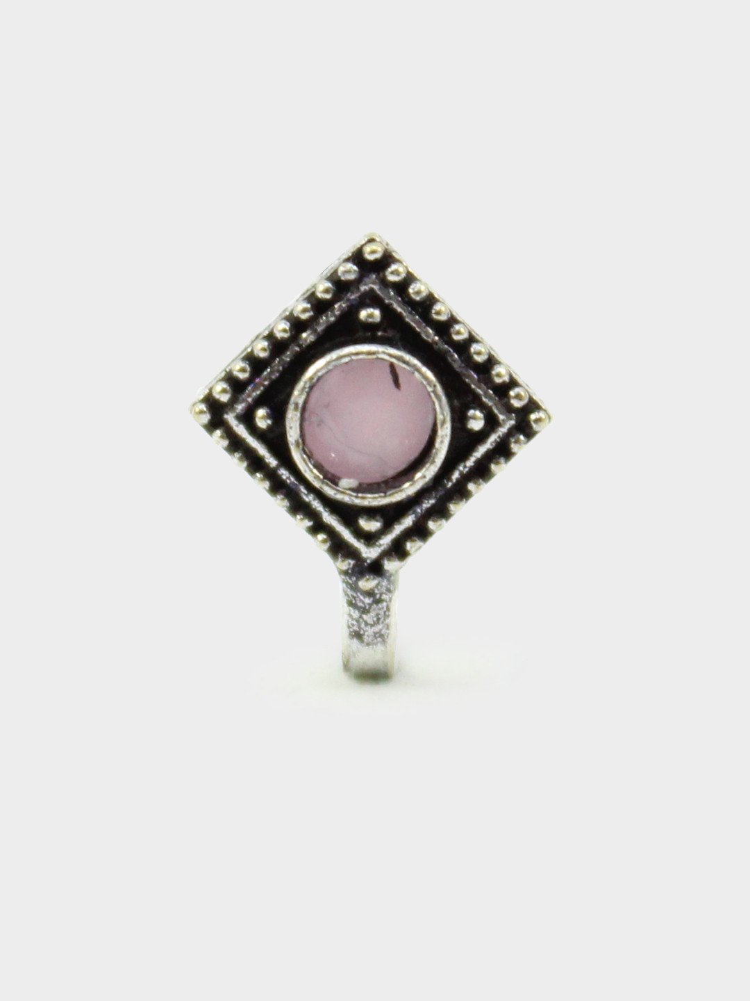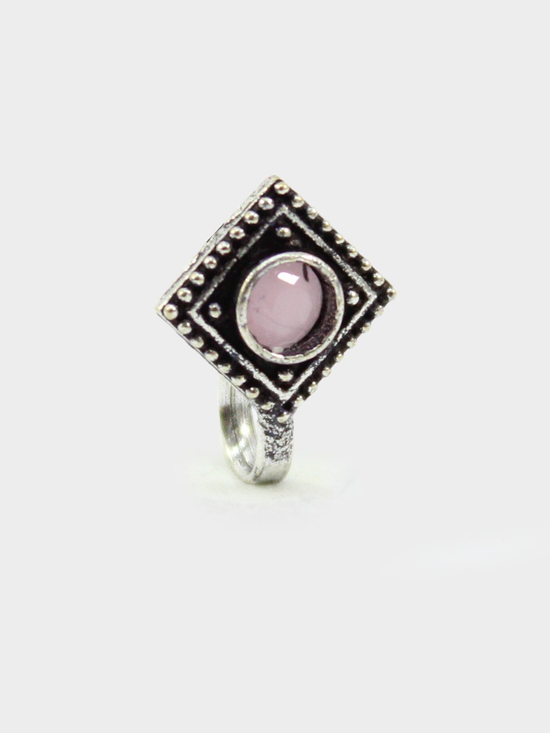 Non-Piercing Square Shape Stone Nose Pin for Women Indian Oxidized Silver Plated Adjustable Free Size Brass Jewelry