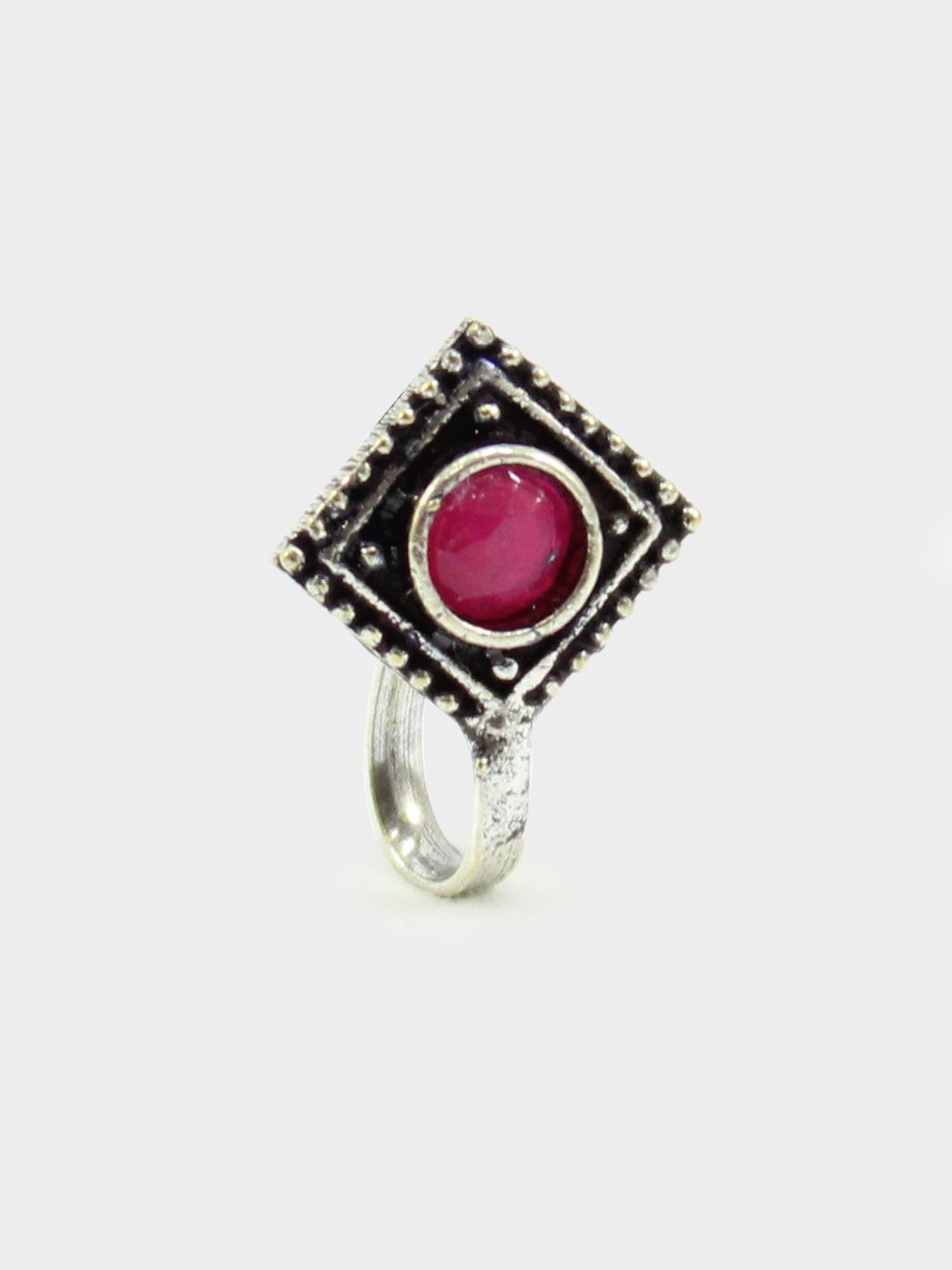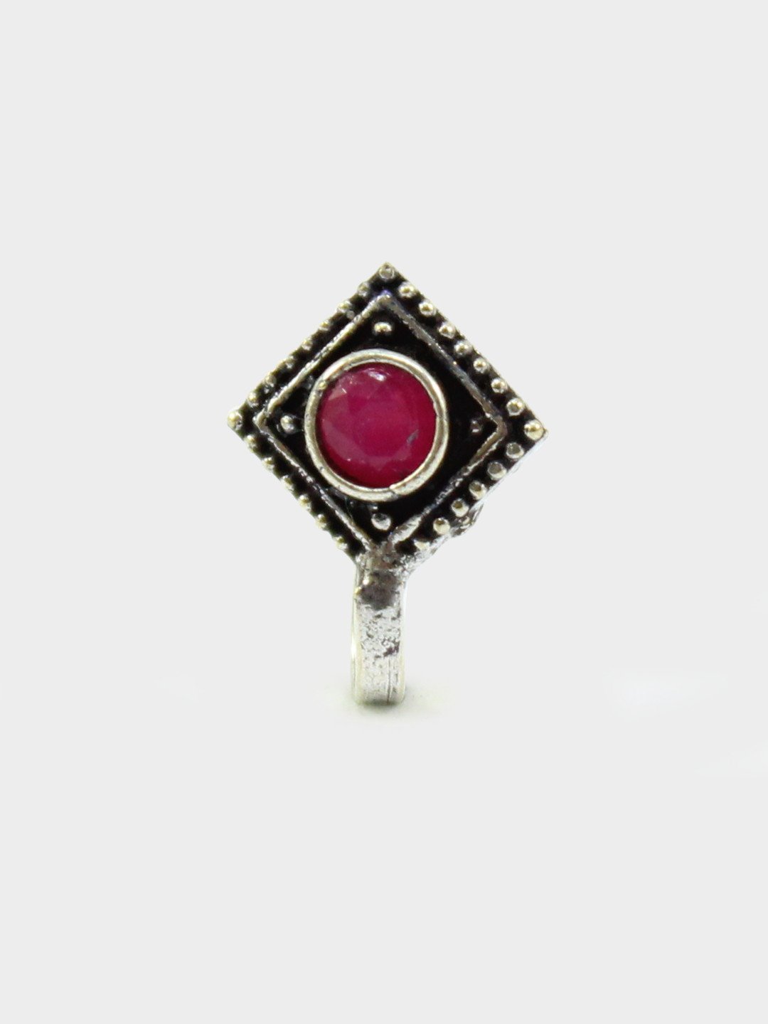 Red Non-Piercing Square Shape Stone Nose Pin for Women Indian Oxidized Silver Plated Adjustable Free Size Brass Jewelry
