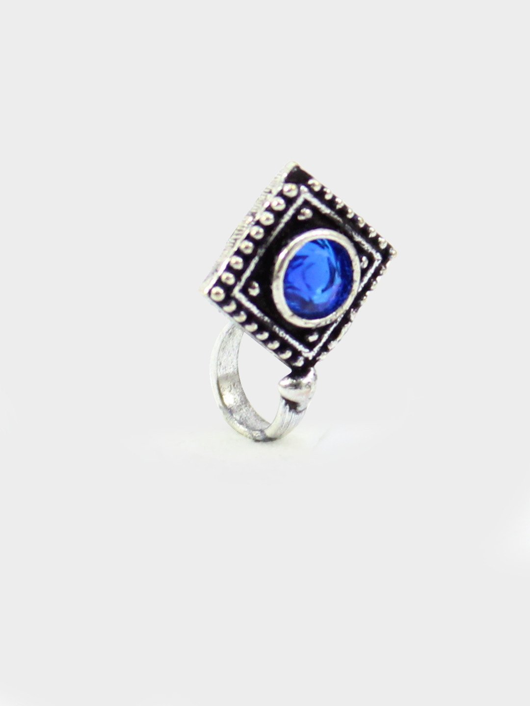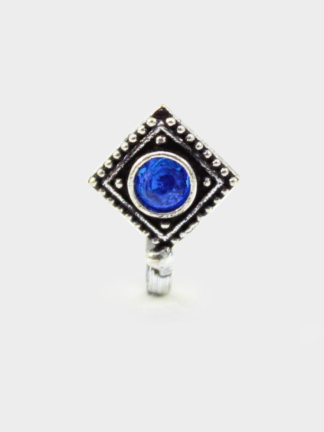 Blue Non-Piercing Square Shape Stone Nose Pin for Women Indian Oxidized Silver Plated Adjustable Free Size Brass Jewelry