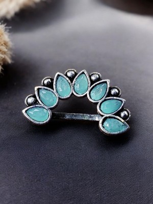 Mint Non-Piercing Square Shape Stone Nose Pin for Women Indian Oxidized Silver Plated Adjustable Free Size Brass Jewelry