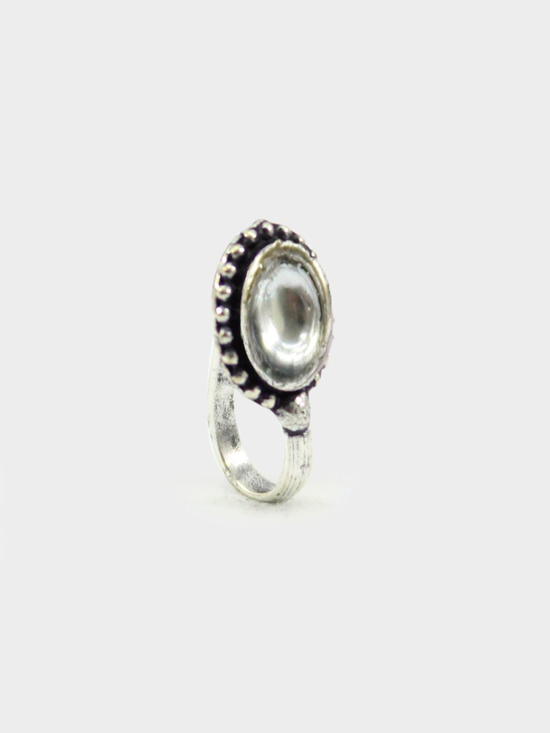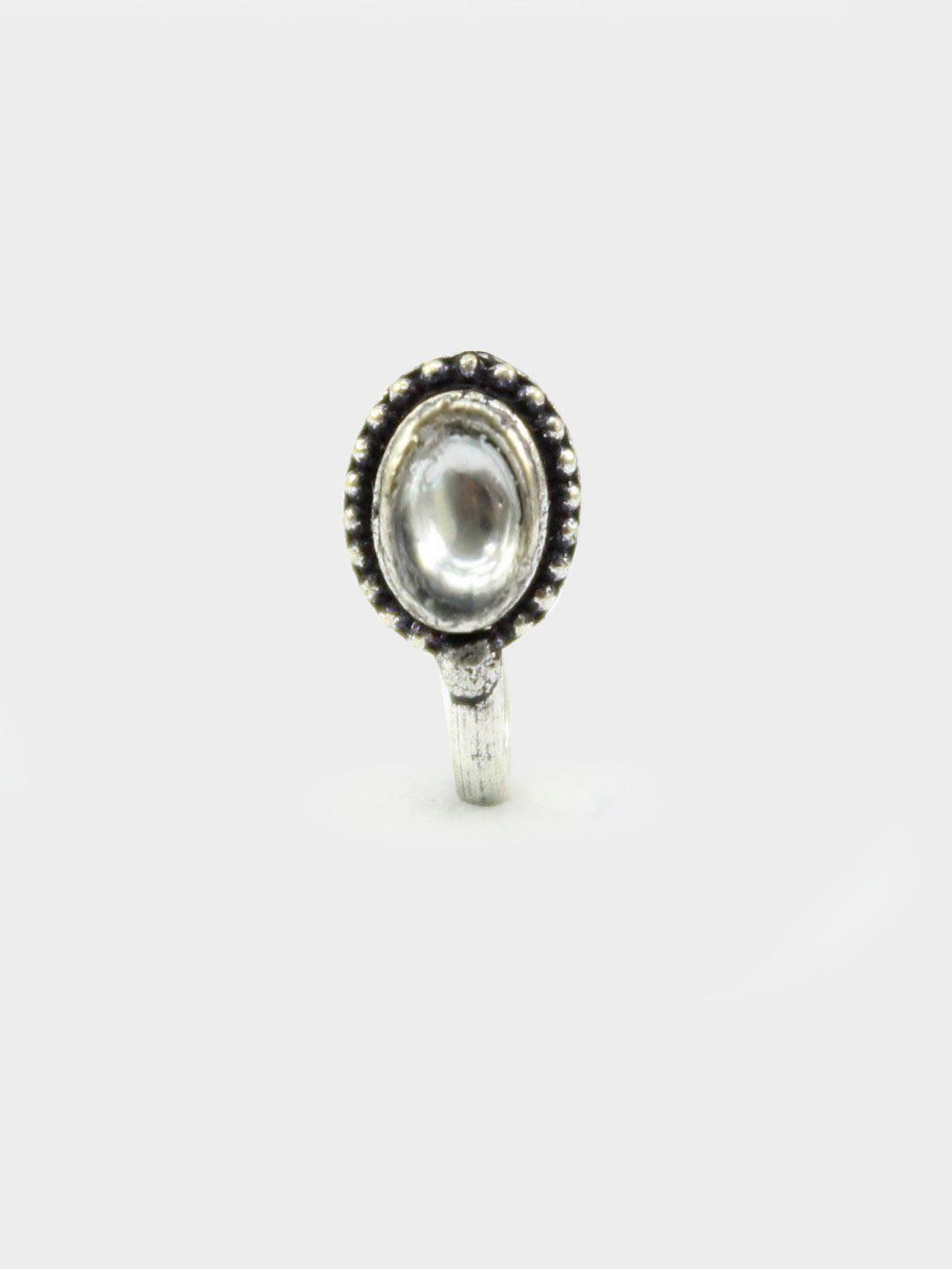 White Non-Piercing Oval Shape Stone Nose Pin for Women Indian Oxidized Silver Plated Adjustable Free Size Brass Jewelry