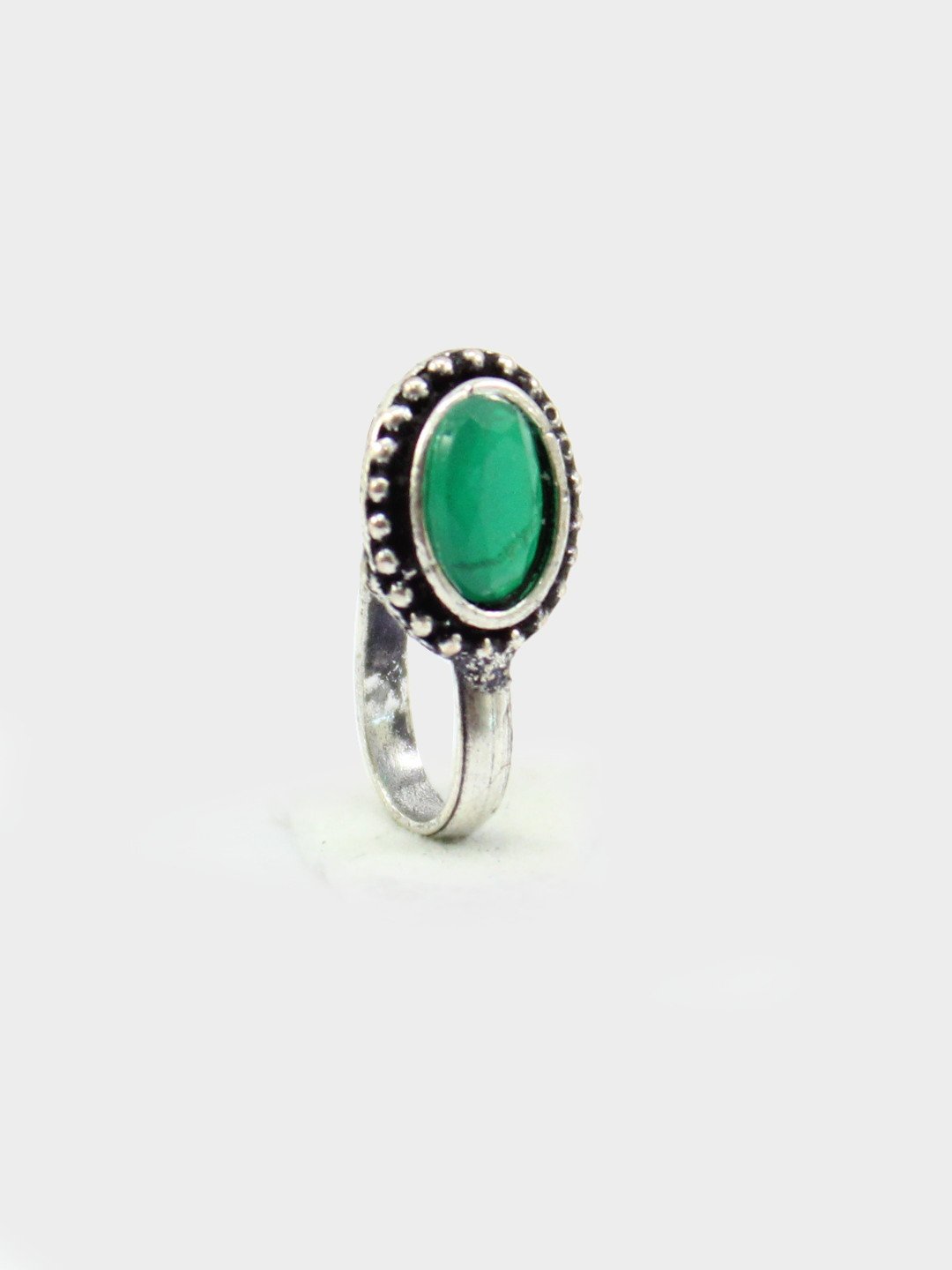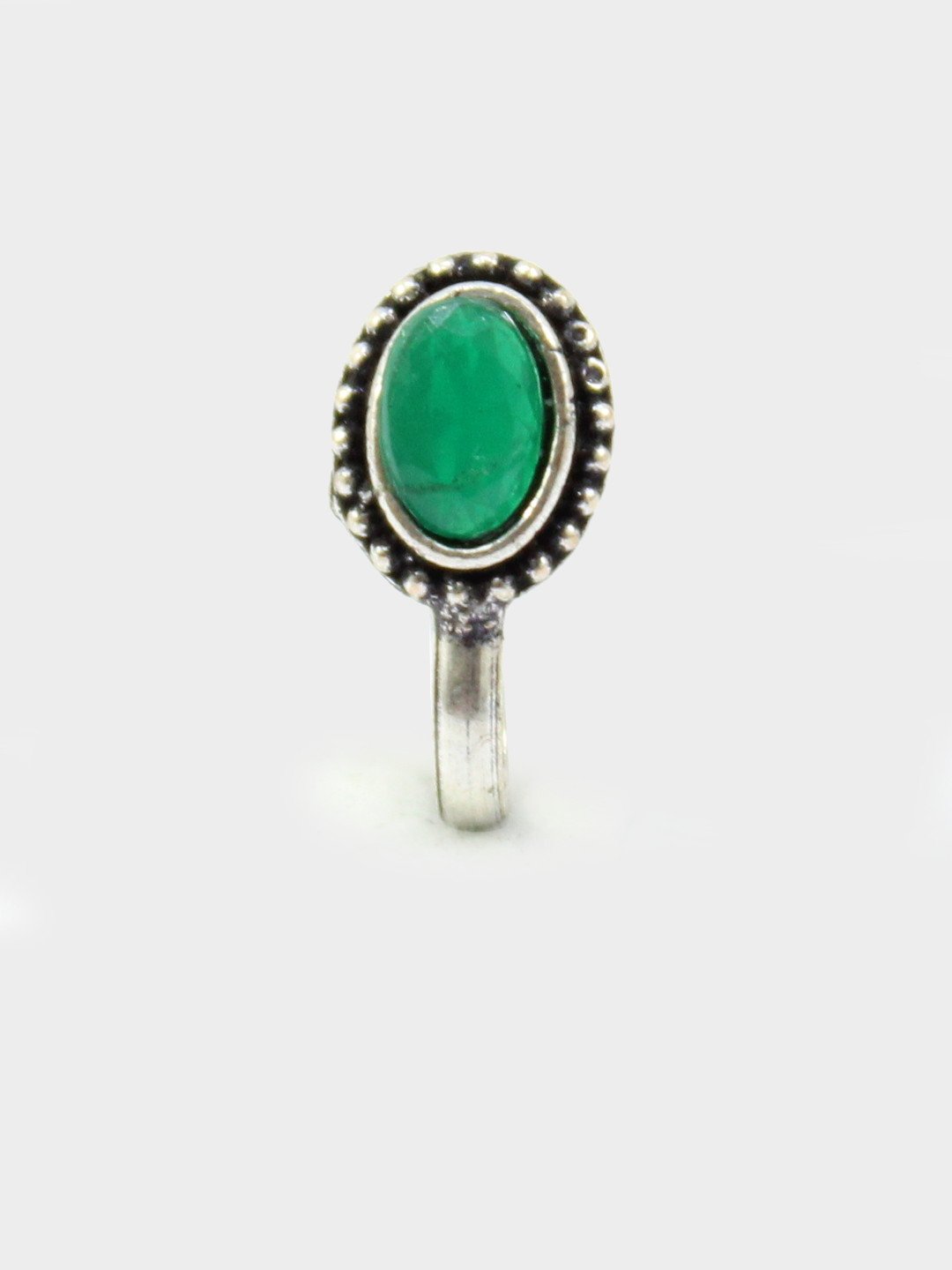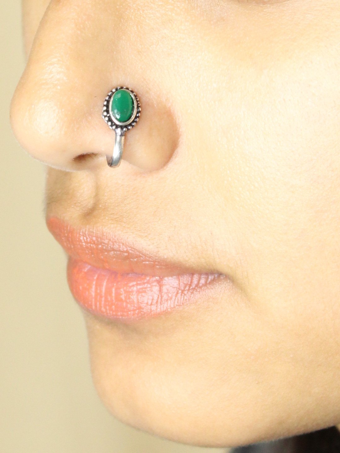 Mint Non-Piercing Oval Shape Stone Nose Pin for Women Indian Oxidized Silver Plated Adjustable Free Size Brass Jewelry