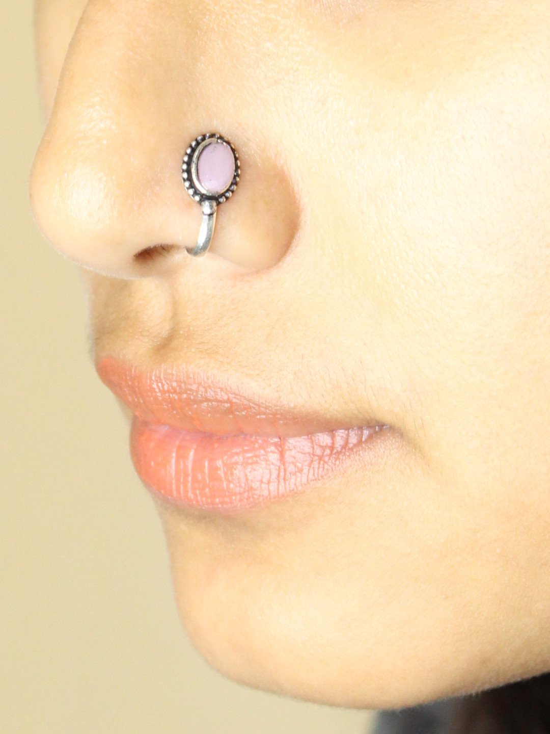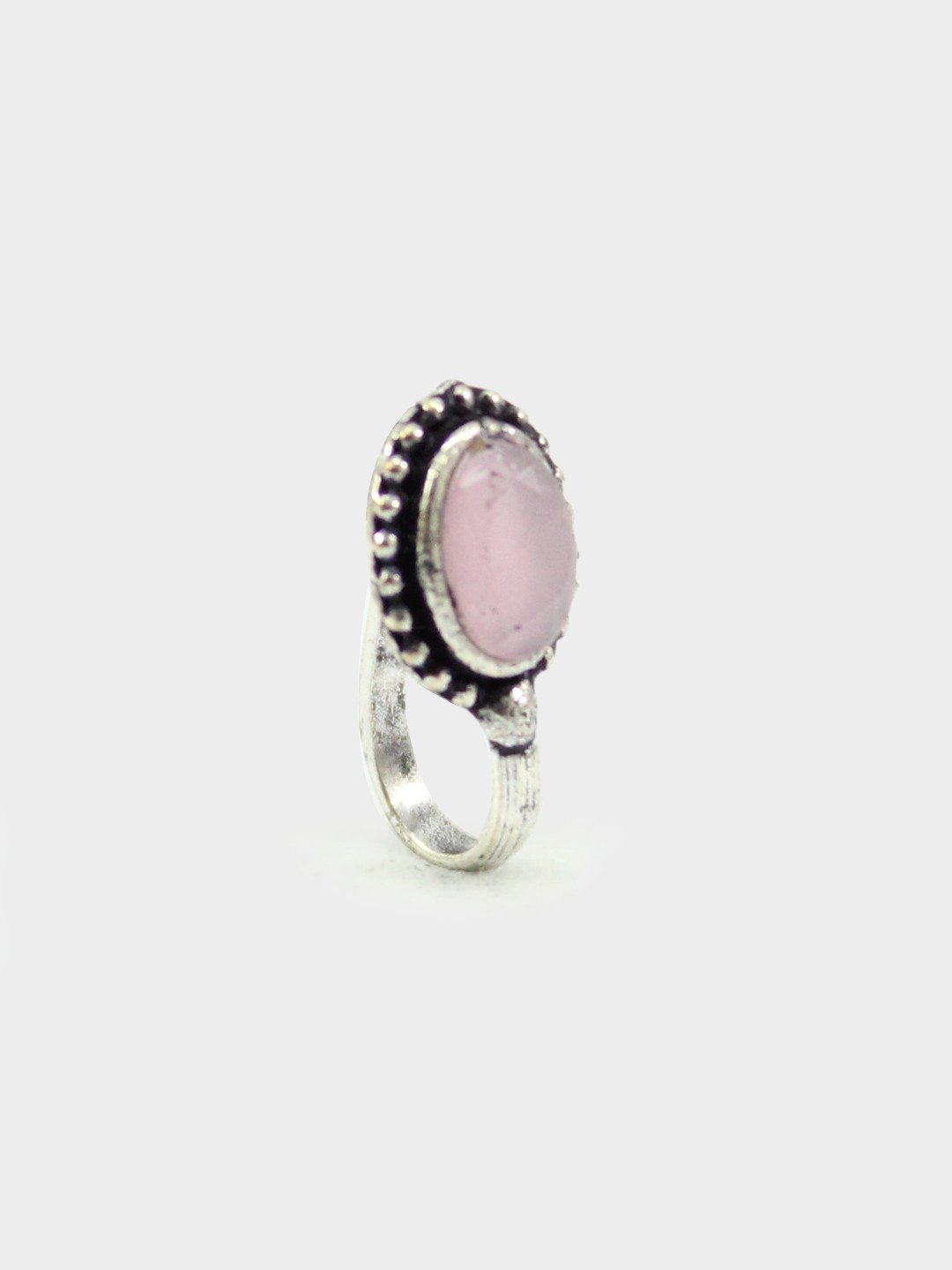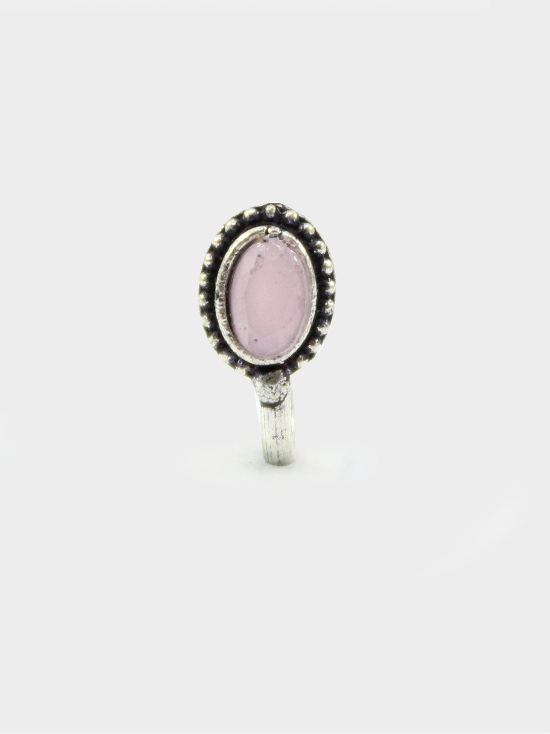 Pink Non-Piercing Oval Shape Stone Nose Pin for Women Indian Oxidized Silver Plated Adjustable Free Size Brass Jewelry