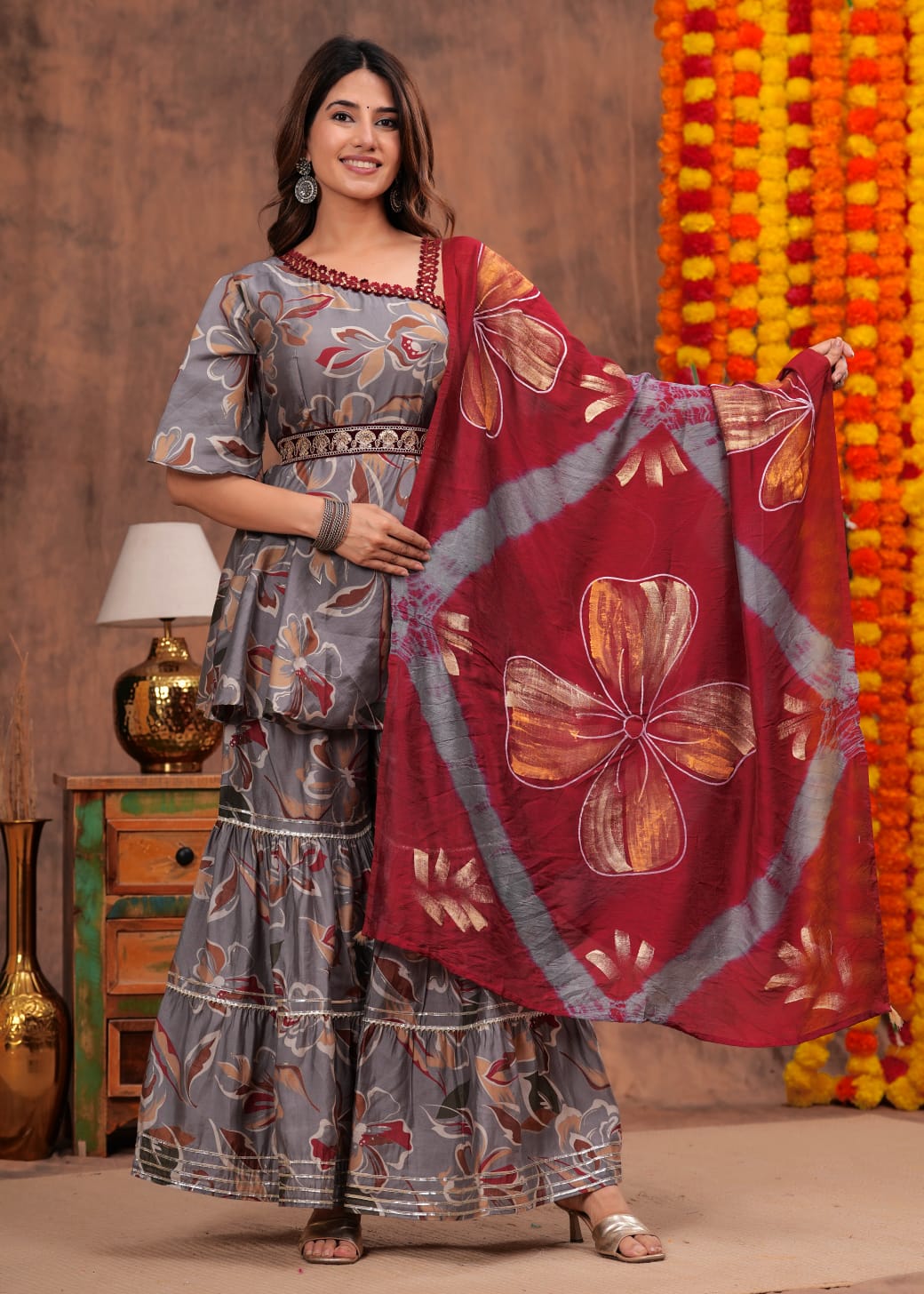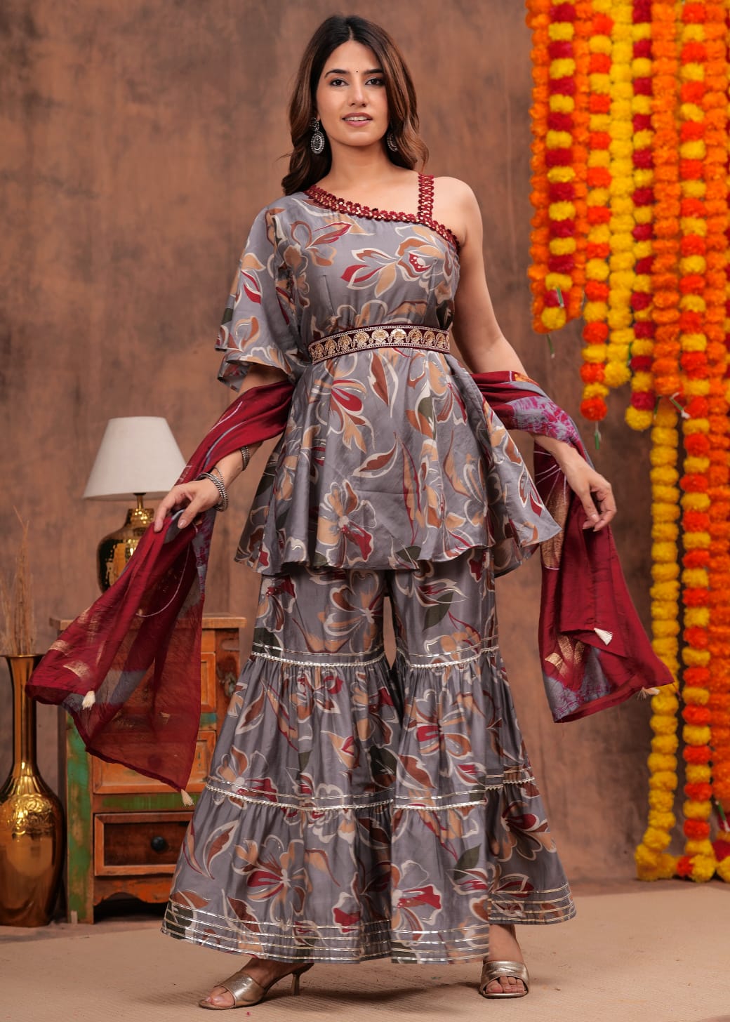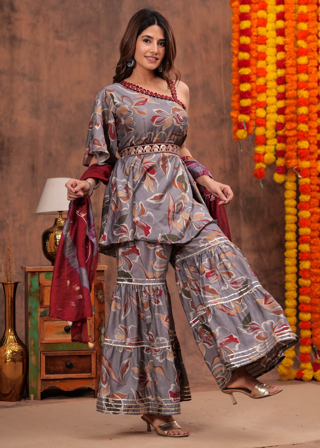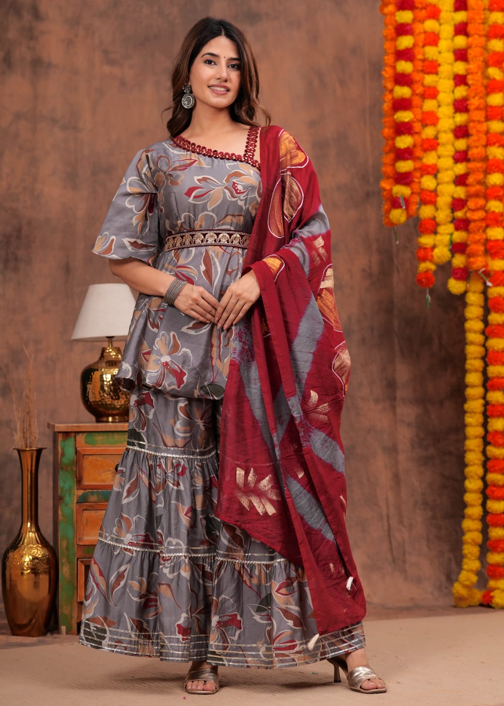 • Work: Floral Print, Heavy Gota Patti Work on Kurti Sharara