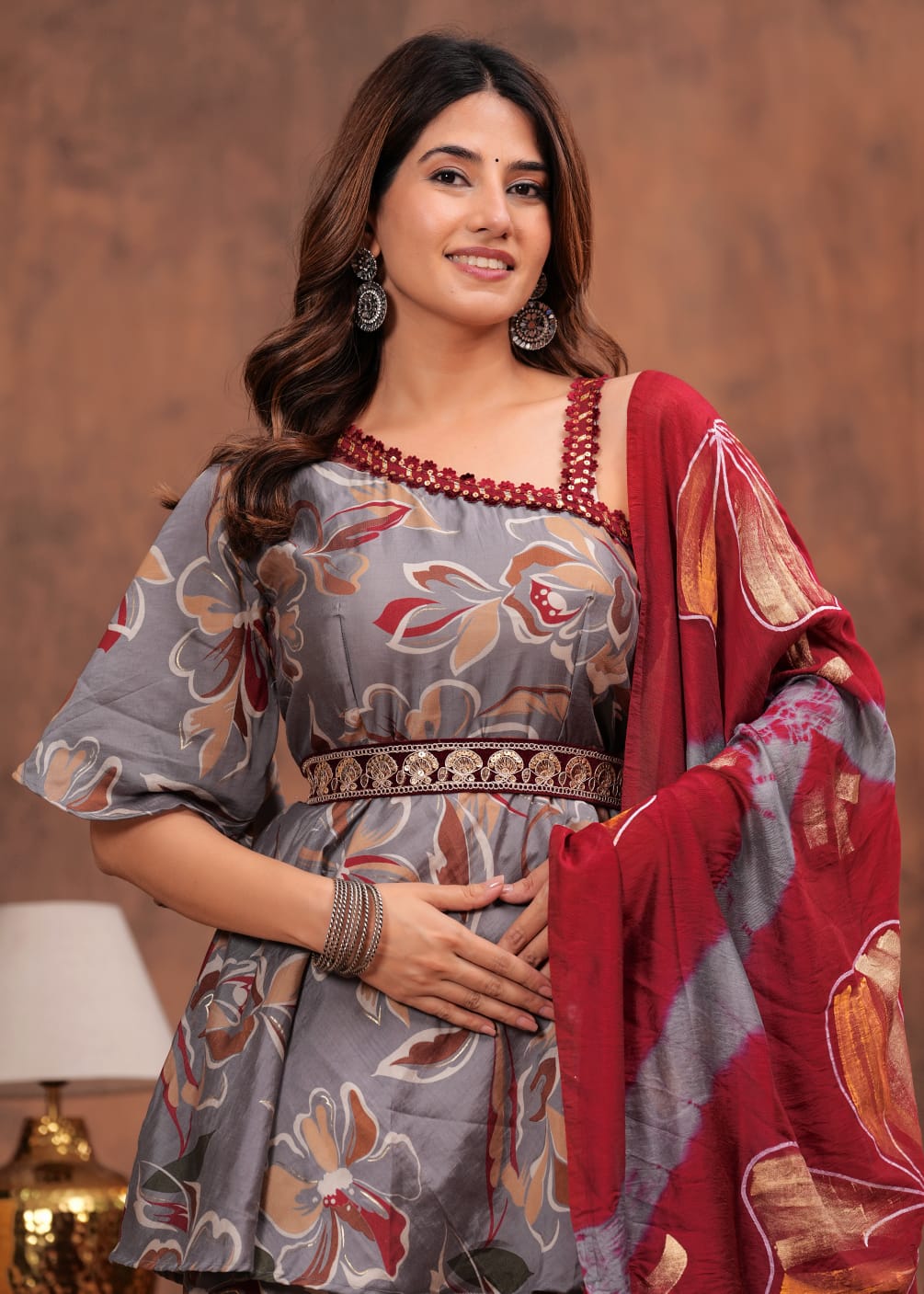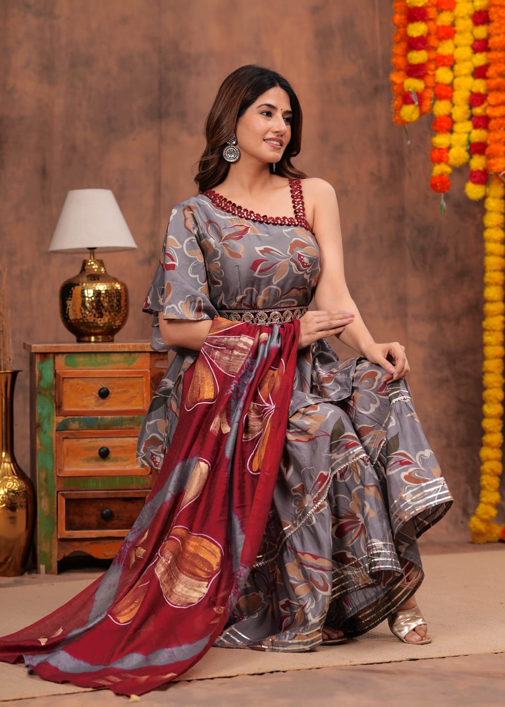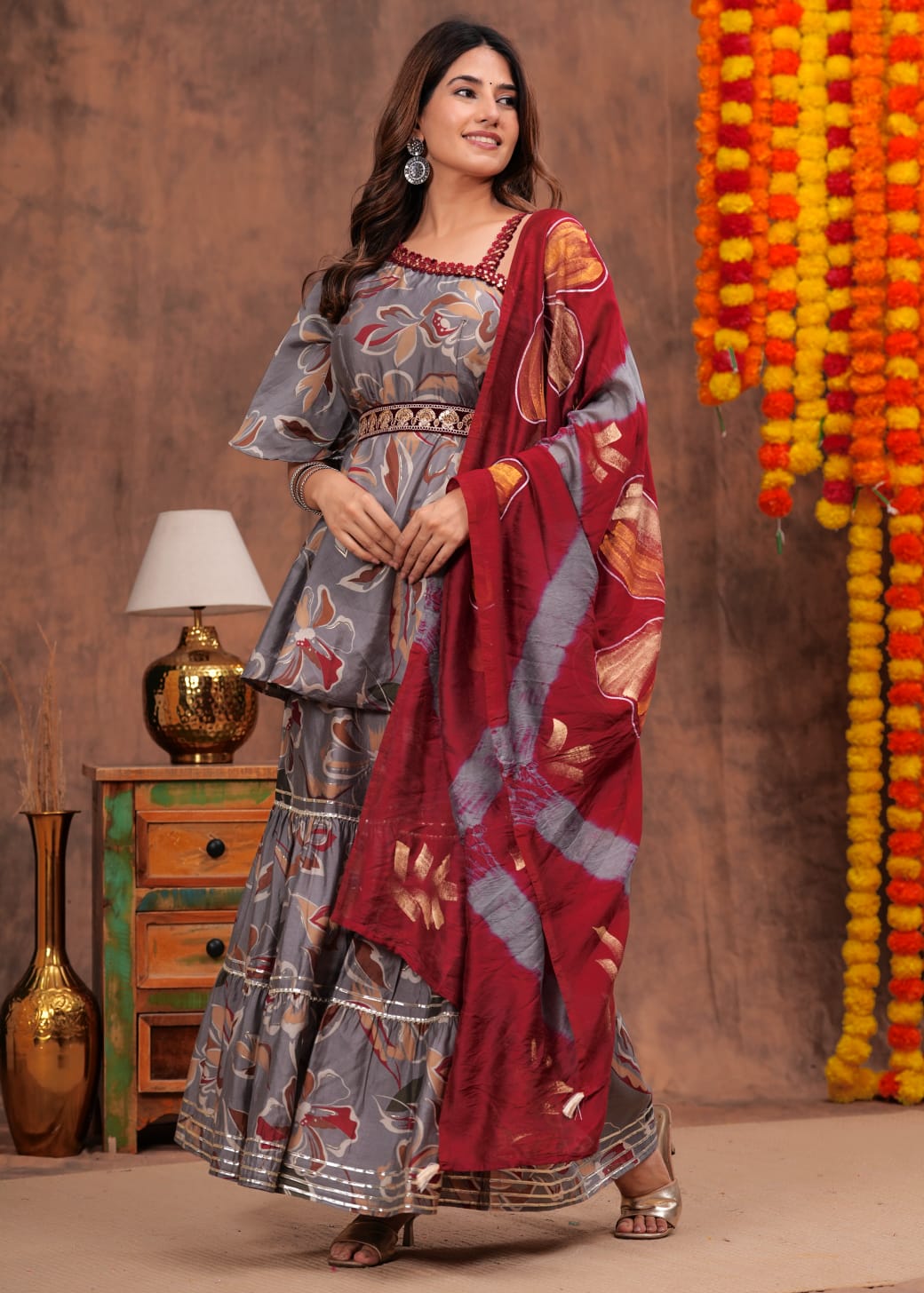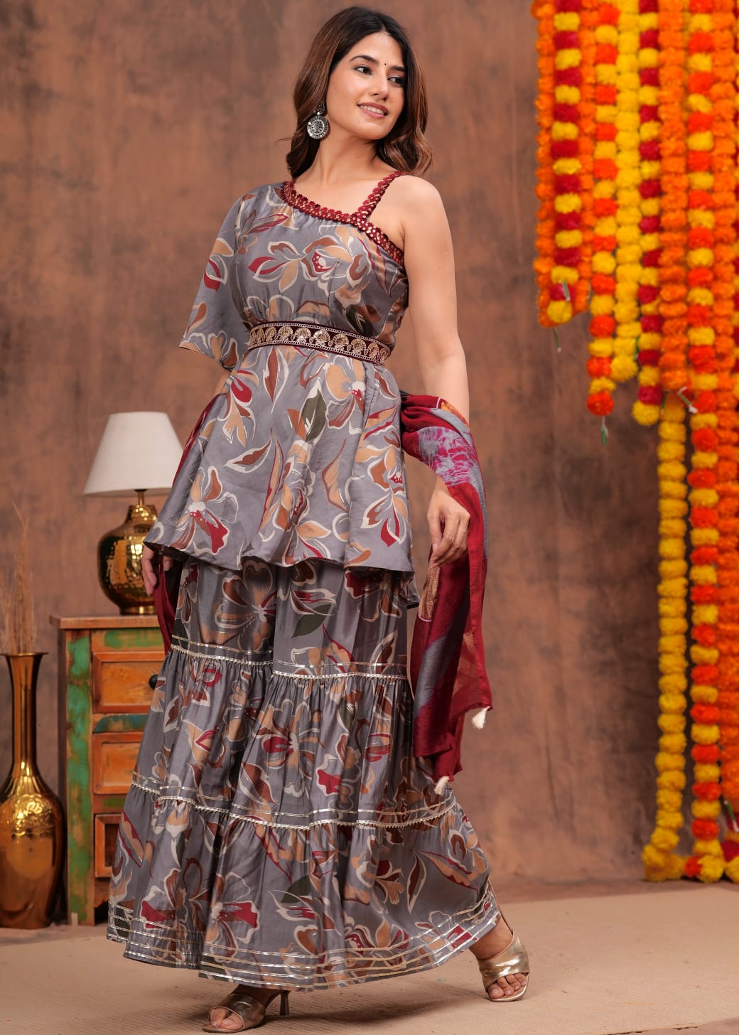 • Work: Floral Print, Heavy Gota Patti Work on Kurti Sharara