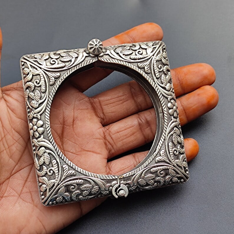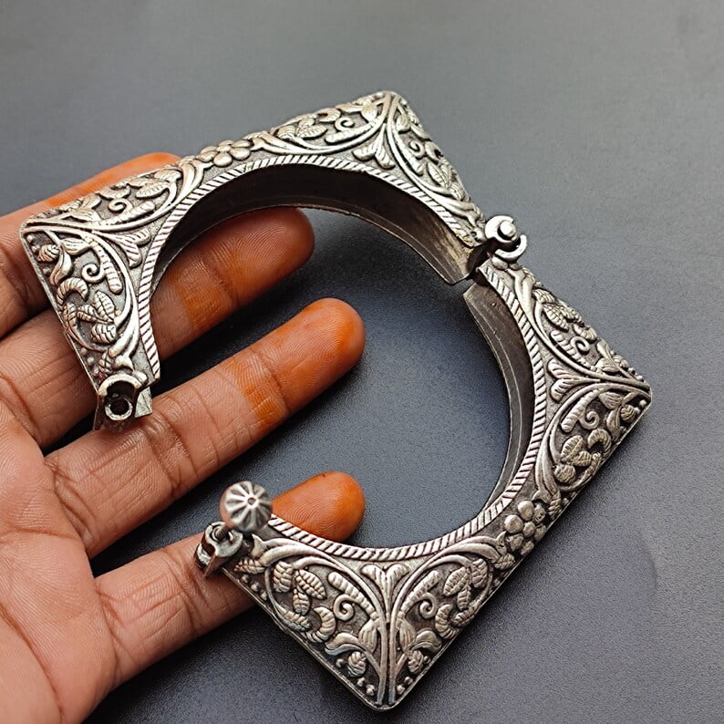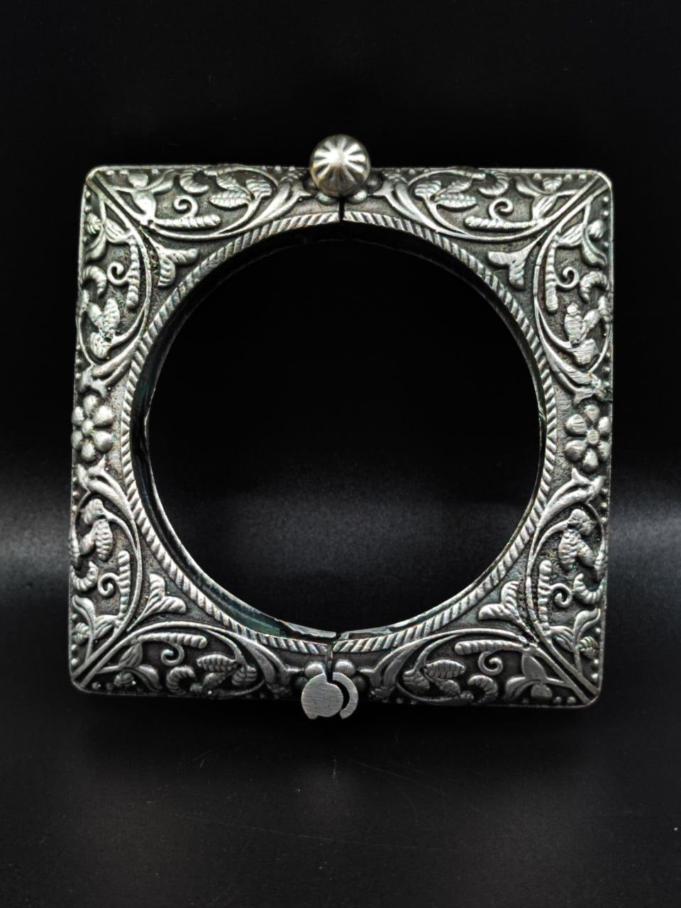 Designer Brass Unique Square Shape Bracelet Oxidised Antique Openable Gypsy Silver Cuff Kada Bangle
