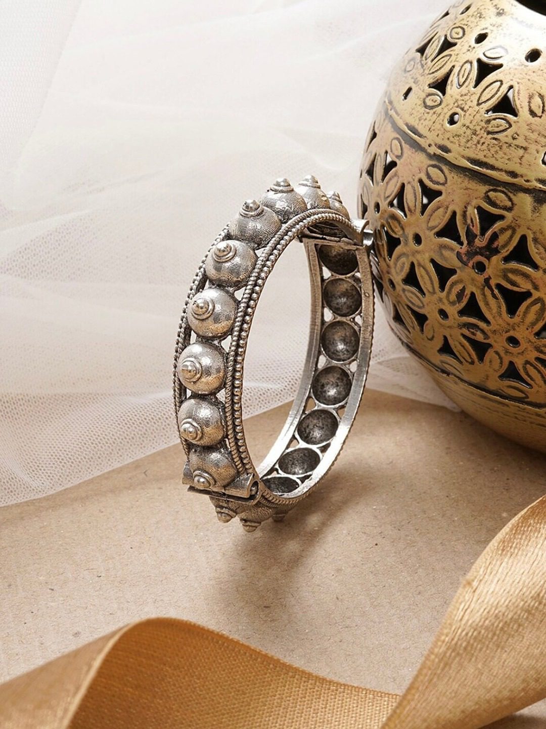Oxidised Bangle Designer Brass Bracelet Antique Free size Gypsy Silver Look alike Cuff Kada